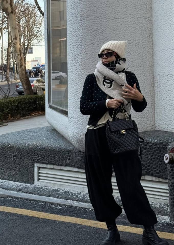 배우 황신혜가 비니와 머플러, 니트 카디건을 매치한 겨울 데일리룩으로 20대 같은 영한패션 스타일을 선보였다.