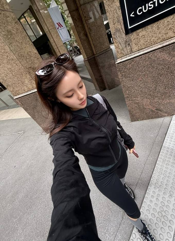 가수 효민이 호주 시드니에서 동네 마실 나온 듯 레깅스 핏 애슬레저룩으로 탄탄한 몸매를 뽐냈다.