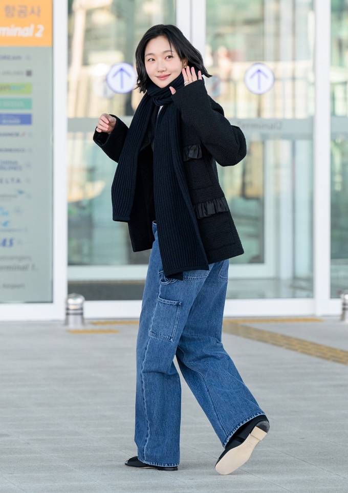 배우 김고은이 클래식한 트위드룩으로 무심한 듯 세련된 공항패션을 선보였다.