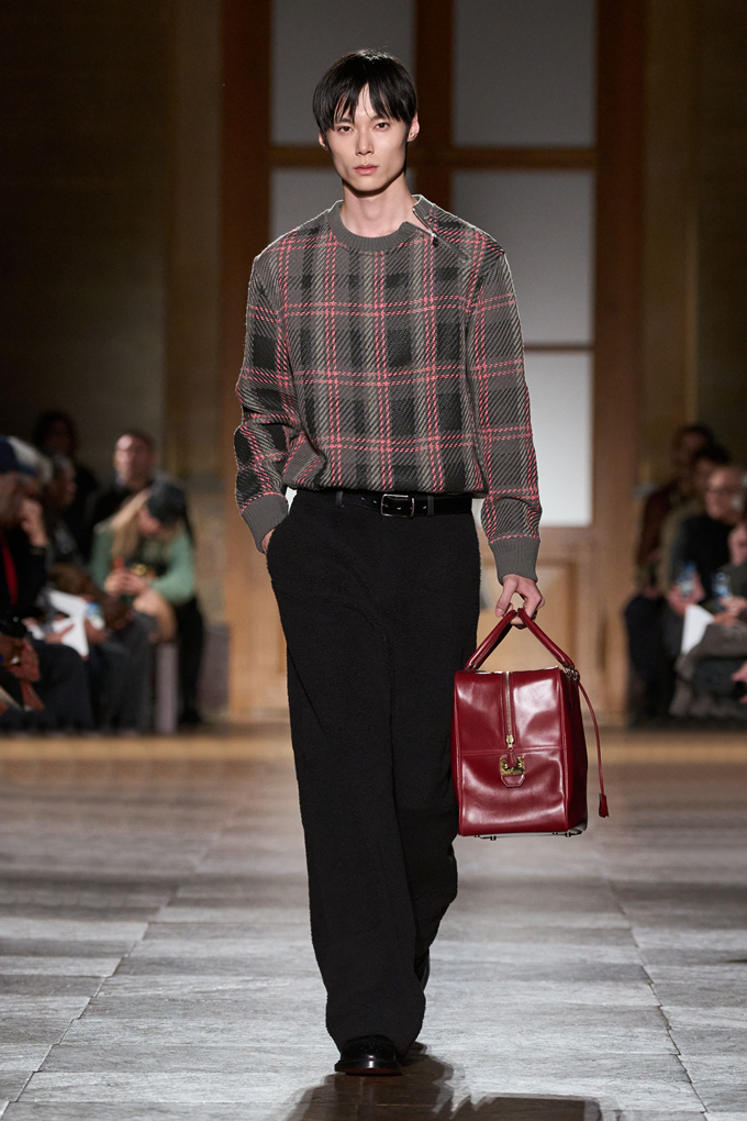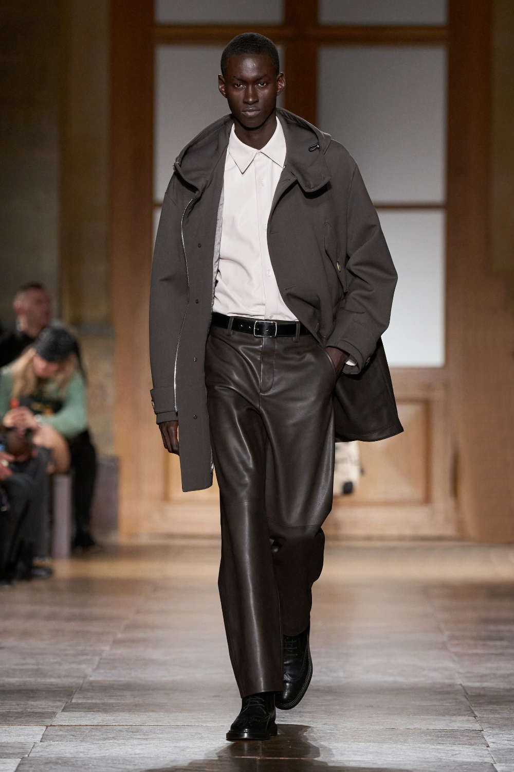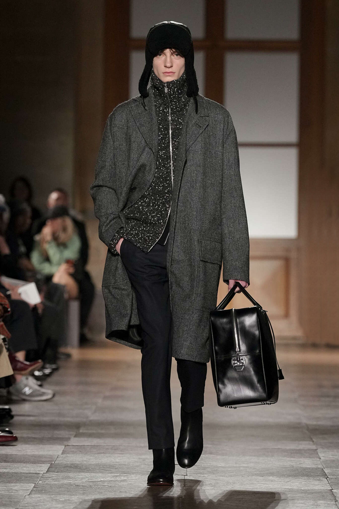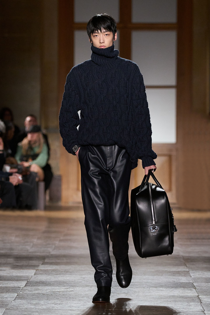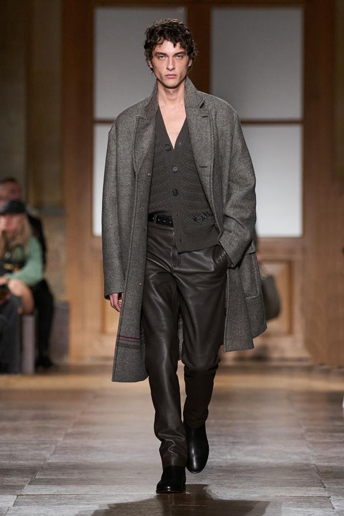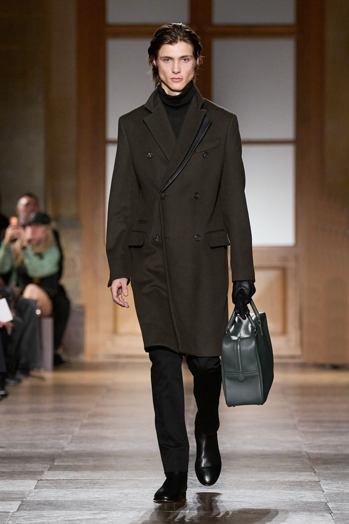 남성복의 전형적인 아이템 블루종, 파카, 피코트, 더블 브레스트 수트를 비롯해 지난 시즌 실루엣을 차용해 에르메스 특유의 최고급 소재로 자연스러운 스타일을 연출했다.