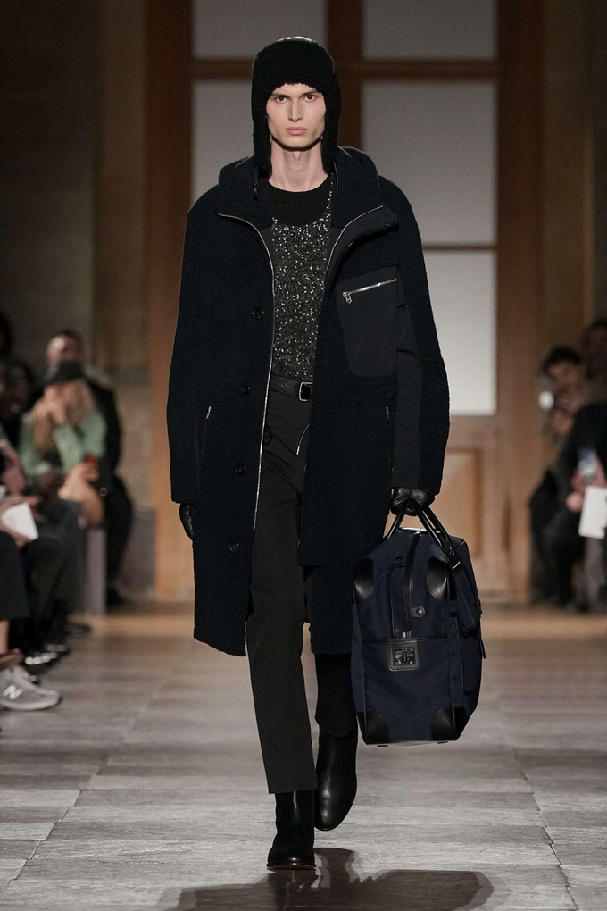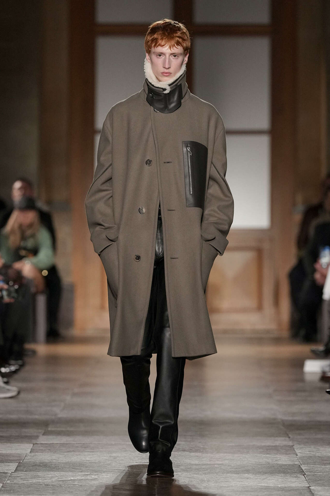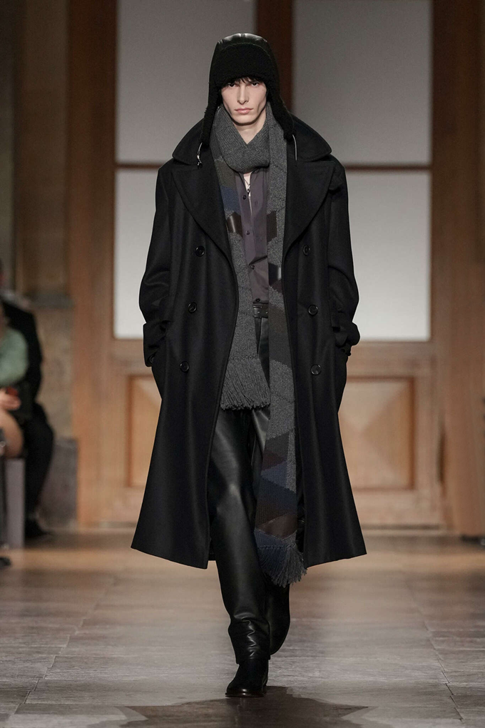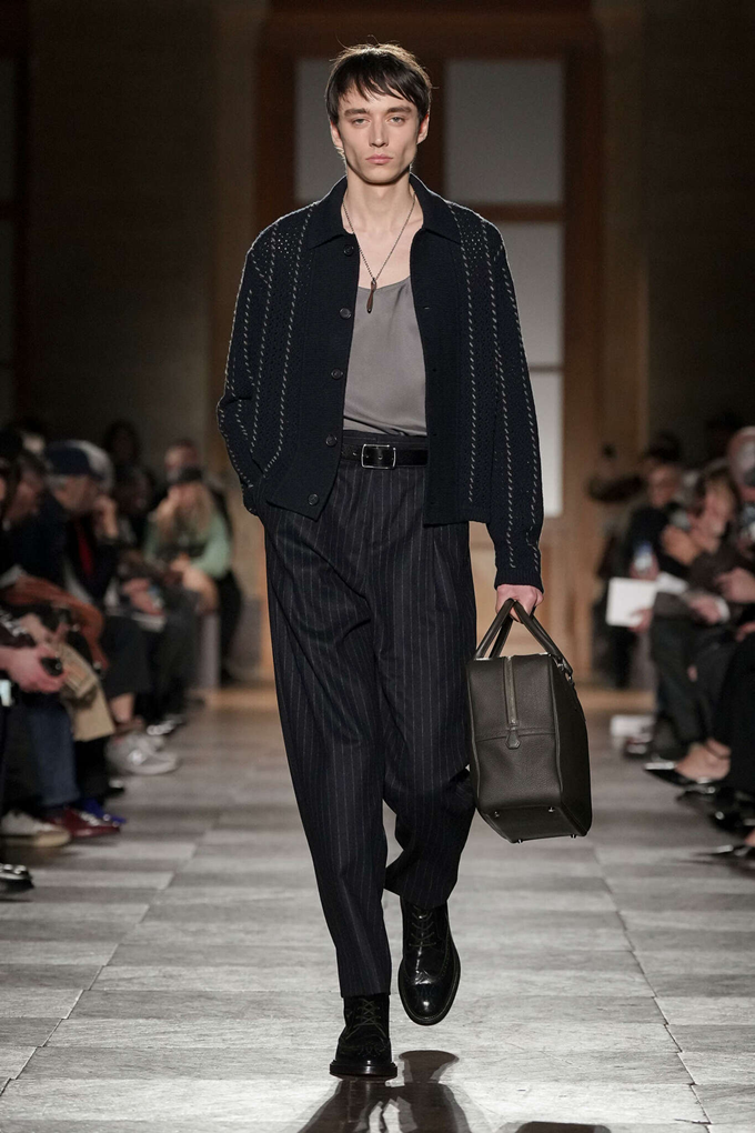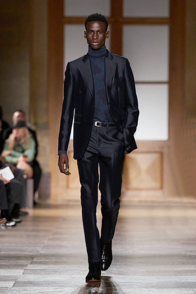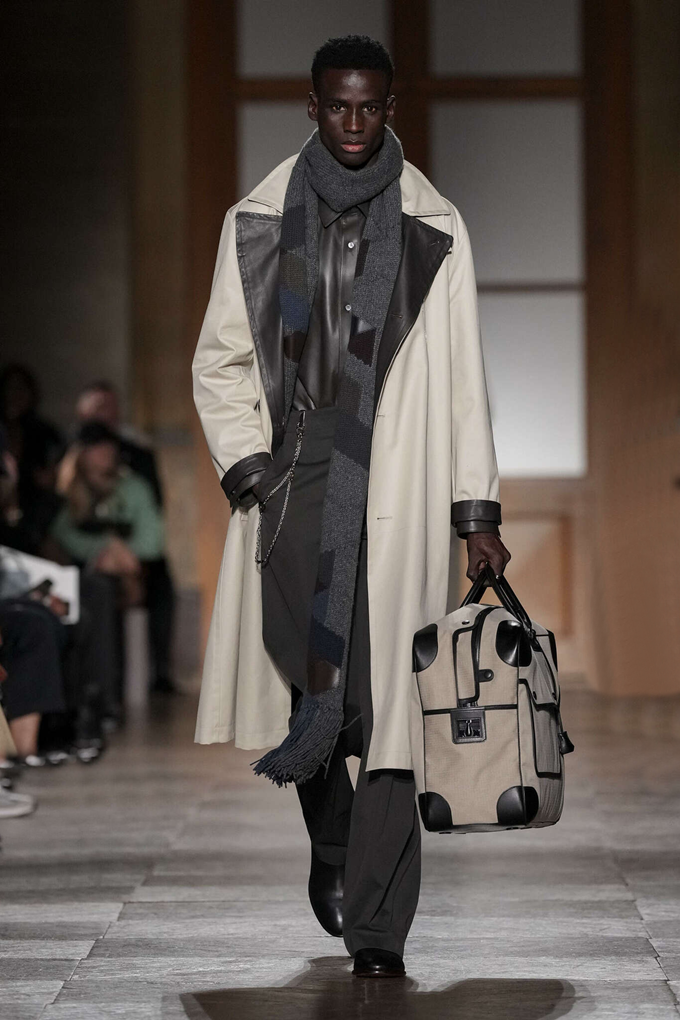 남성복의 전형적인 아이템 블루종, 파카, 피코트, 더블 브레스트 수트를 비롯해 지난 시즌 실루엣을 차용해 에르메스 특유의 최고급 소재로 자연스러운 스타일을 연출했다.