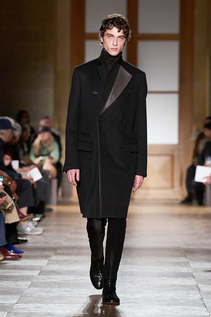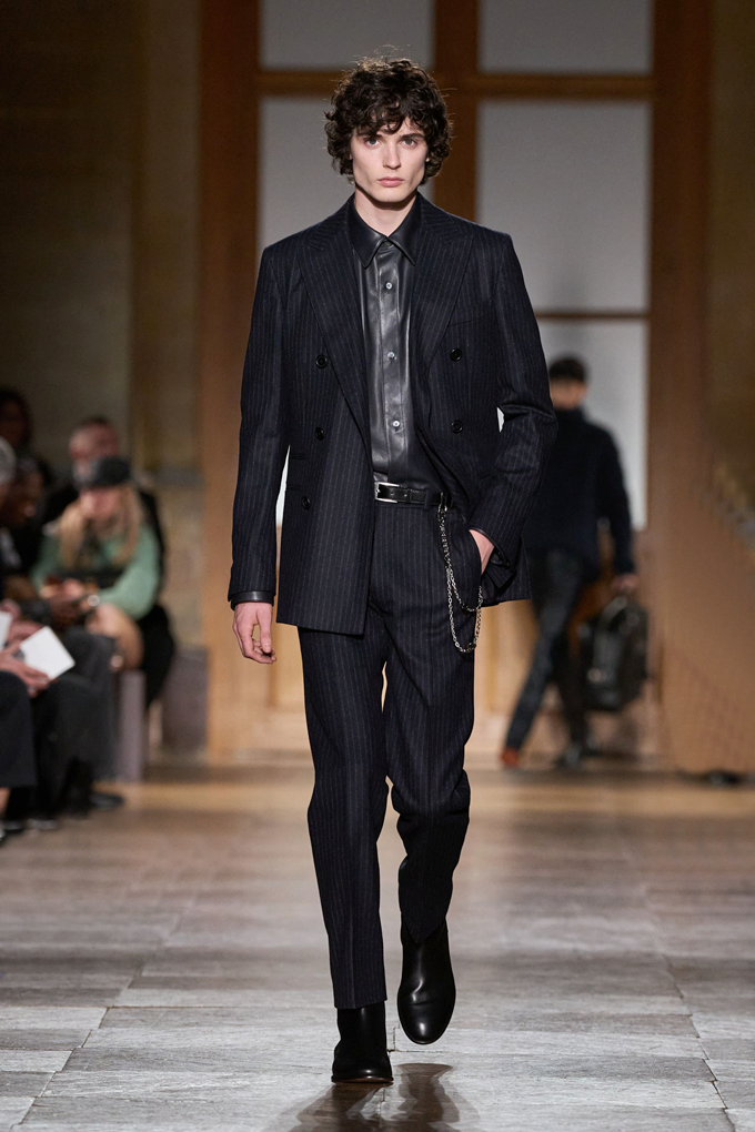 옛 파리 증권거래소였던 브롱니아르 궁전에서 열린 에르메스 남성복 컬렉션은 니샤니앙의 과거 수많은 런웨이 무대 영상이 상영이 상영되었으며 클래식 코드를 현대적인 감각으로 재해석한 절제되고 편안한 분위기의 시티룩을 선사했다.