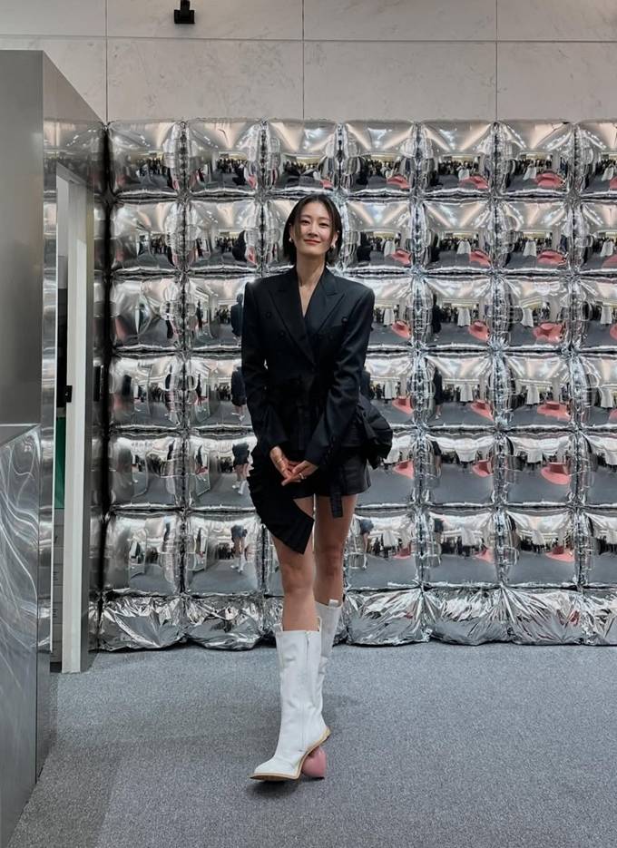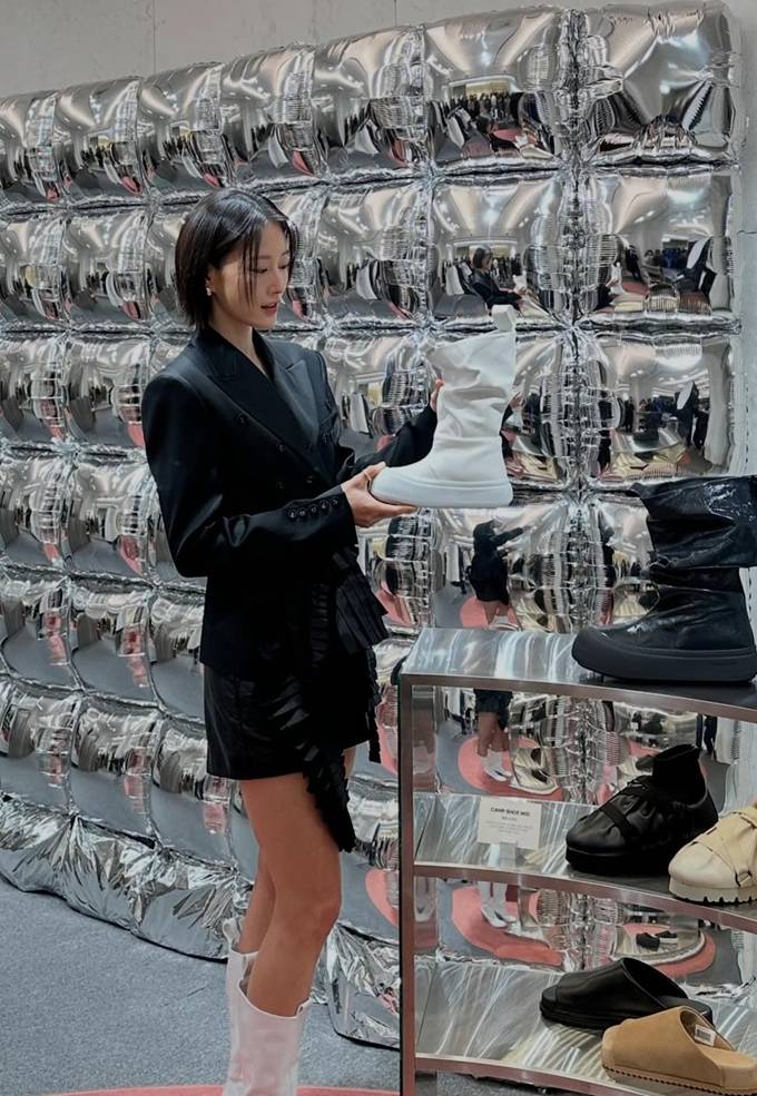 또 여기에 화이트 롱부츠를 매치해 우월한 모델 핏을 더욱 돋보이게 했다.