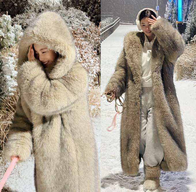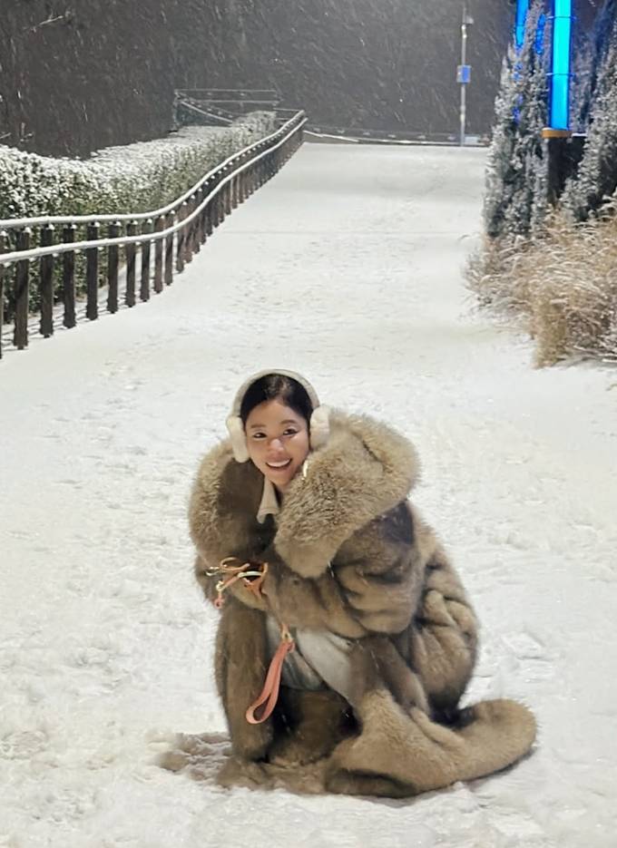 공개한 사진에서 기은세는 한겨울 눈 덮인 풍경 속에서 풍성한 텍스처가 돋보이는 은은한 베이지 톤의 테디베어 퍼 코트룩으로 차분하면서도 고급스러운 귀요미를 발산했다.
