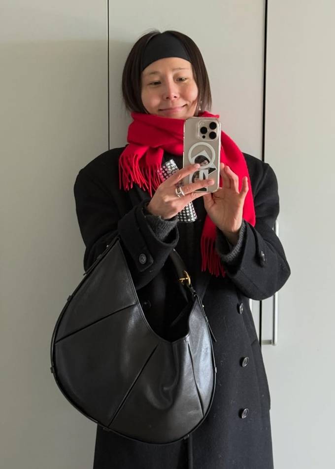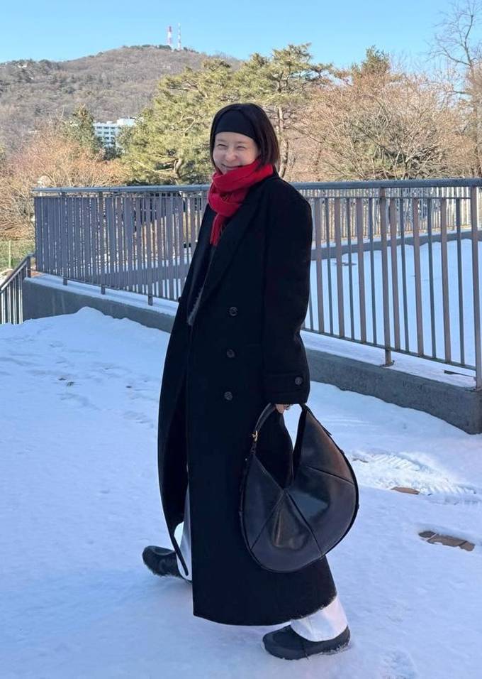 김나영, 겨울 패션도 한 끗 차이! 레드 머플러와 헤어밴드로 포인트 패셔니스타의 코트룩