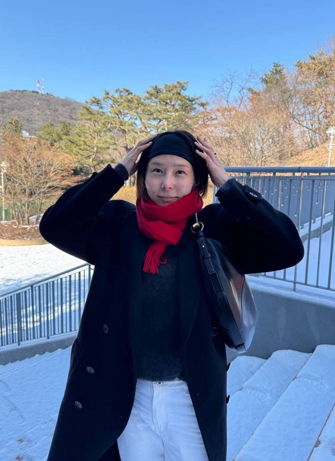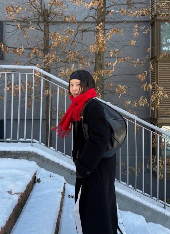 공개한 사진에서 김나영은 블랙 롱 코트에 강렬한 레드 컬러의 머플러와 짧은 헤어 스타일을 정리한 헤어 밴드를 매치해 단정하면서도 감각적인 외출 스타일을 완성했다.