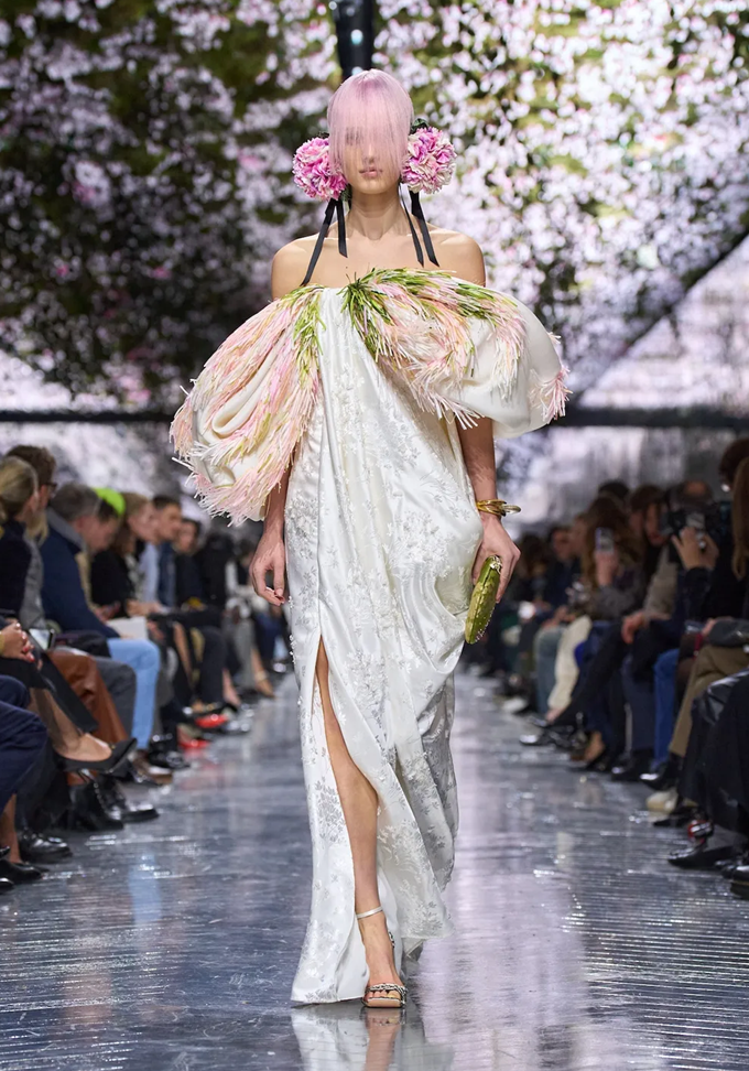 과거의 기법을 현재로 소환하고 이를 다시 미래로 확장하는 꾸뛰르는 자연과 시간, 그리고 하우스의 유산을 현대적인 시선으로 재해석한 것이 특징이다.