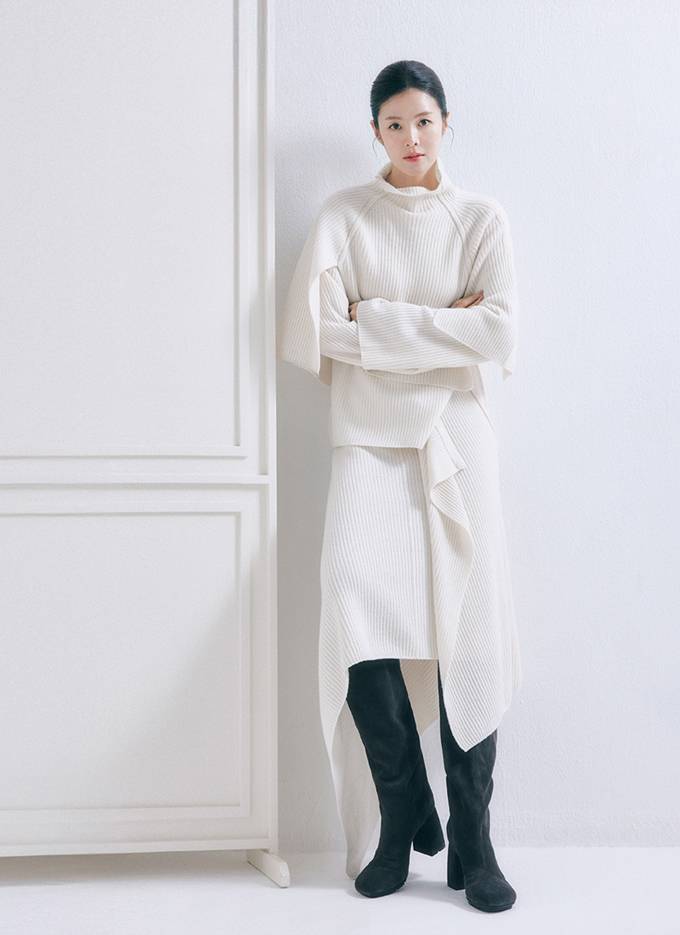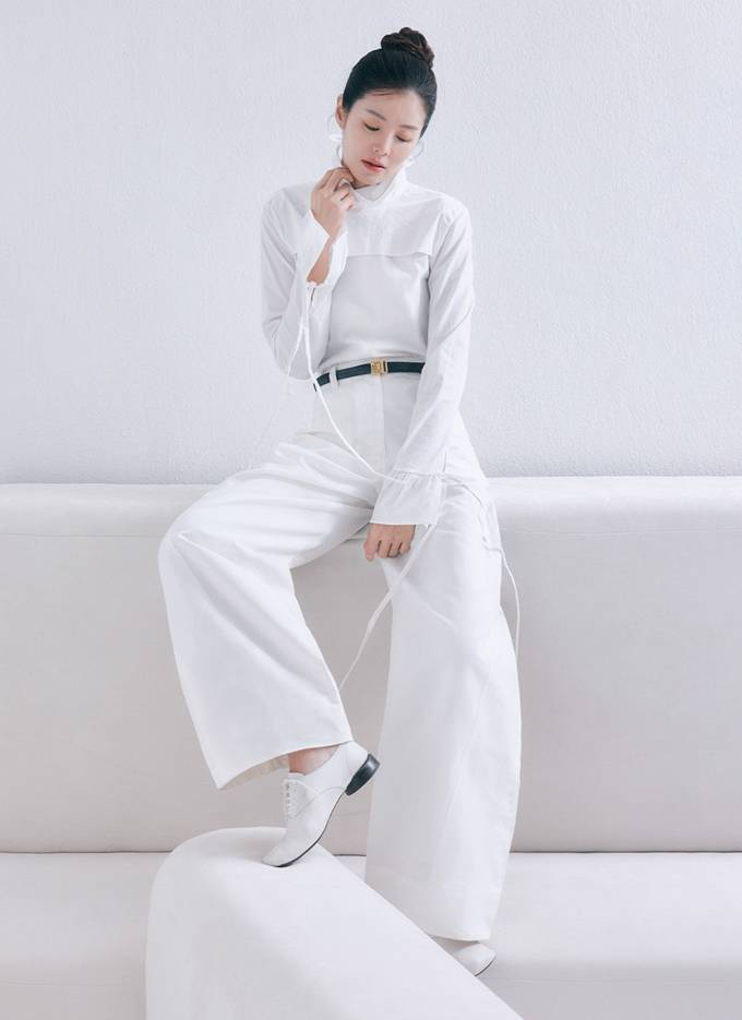 공개한 화보에서 김성은은 블랙 슬리브리스 원피스, 화이트 셔츠와 블랙 재킷의 슈트룩, 화이트 투피스, 블랙 원피스와 블랙 팬츠, 화이트 니트 카디건과 블랙 팬츠 등 파워풀하면서도 시크한 블랙&화이트의 커리어우먼룩을 완성했다.