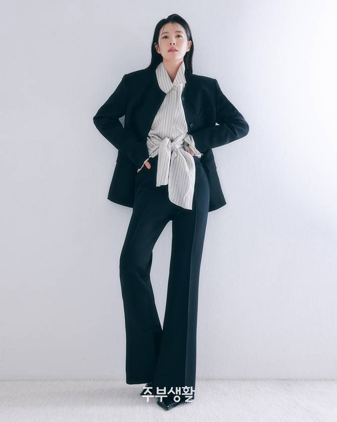 배우 김성은이 파워풀한 시크한 커리어우먼룩으로 시선을 사로잡았다.