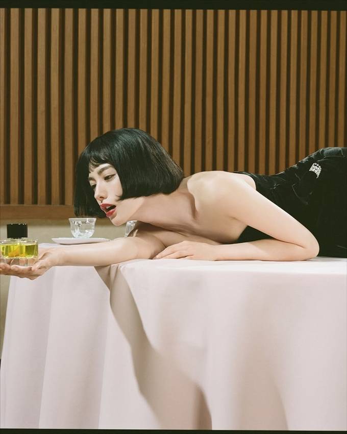 공개한 사진에서 나나는 쇄골라인이 노출된 튜브톱에 옆트임이 있는 하이슬릿 블랙 드레스룩으로 도발적이면서도 고혹적인 미모를 드러냈다.