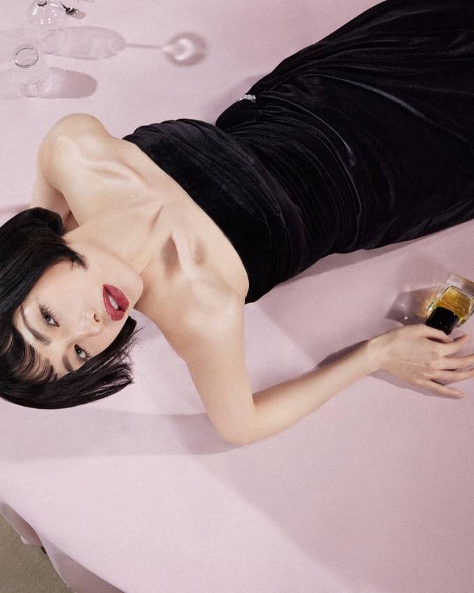 나나, 한 편의 영화 같은 도발 고혹미! 하이슬릿 튜브톱 블랙 드레스룩