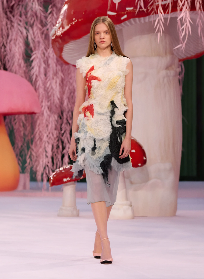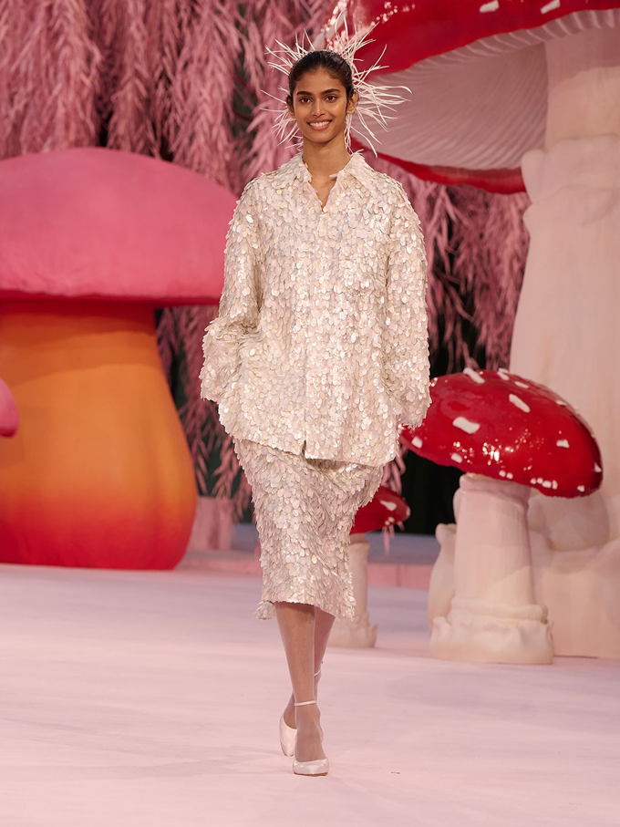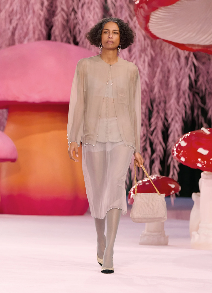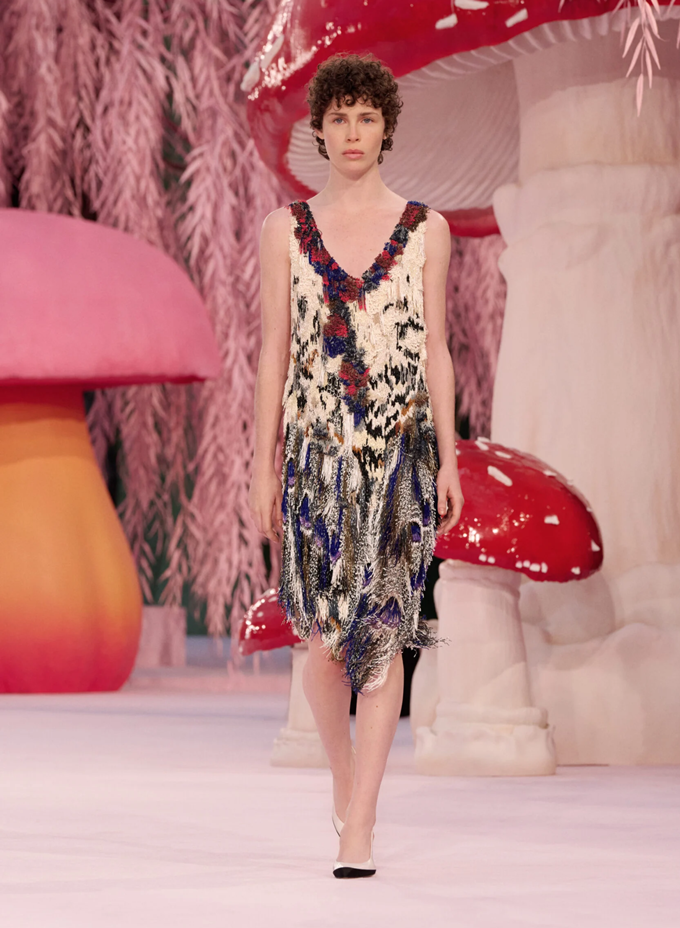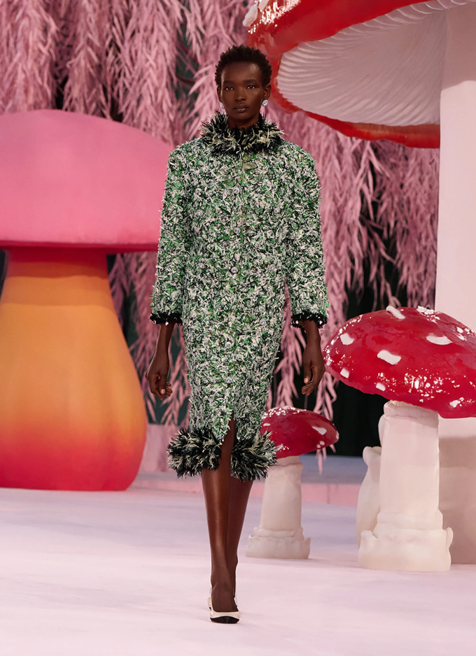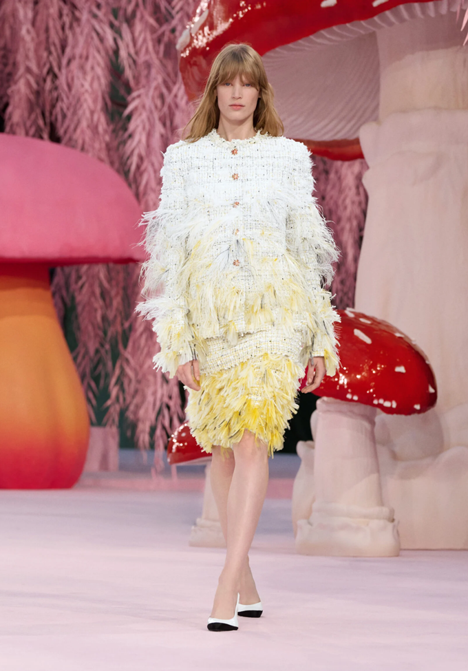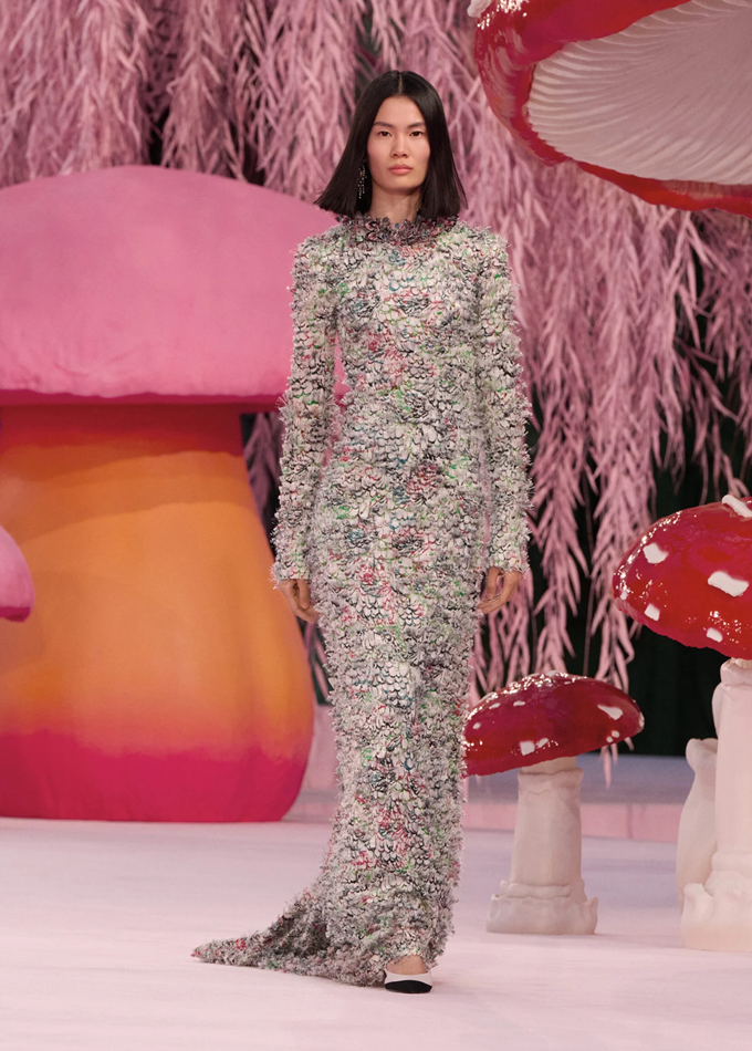 샤넬 크리에이티브 디렉터 마티유 블라지(Matthieu Blazy, 41)는 이번 첫 오뜨꾸띄르 컬렉션에서 다양한 종류의 버섯 조형물로 장식된 신비롭고 환상적인 런웨이 무대를 선보였다.