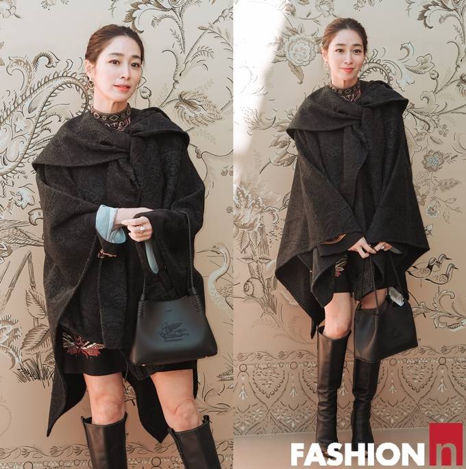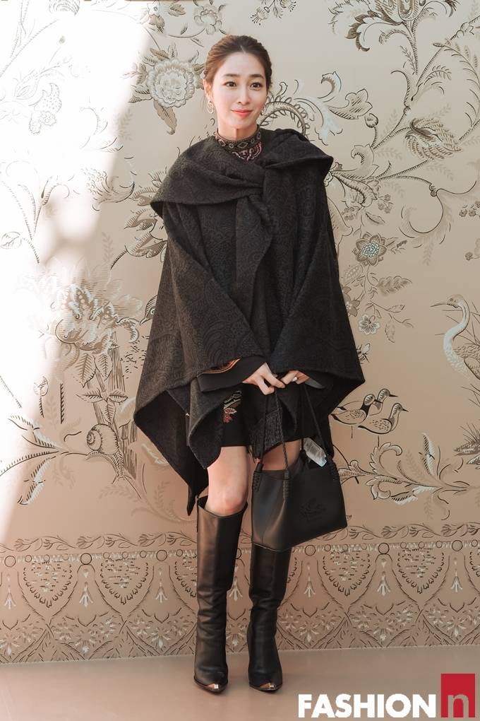 배우 이민정이 케이프 코트와 롱부츠로 우아한 강남 나들이룩을 선보였다.