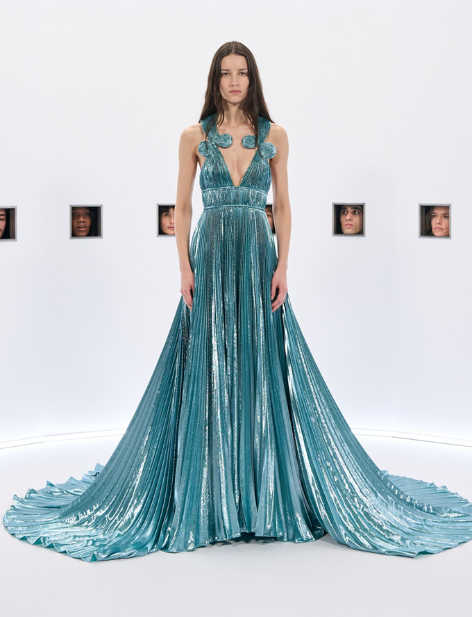 발렌티노가 옛 할리우드 영화에 대한 애정과 스타들을 언급하는 이 대사는 추억과 공유된 상상력의 차원을 불러일으키며 웅장함과 경이로움이 깃든 런웨이로