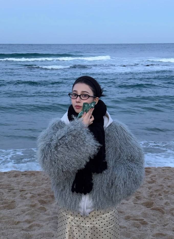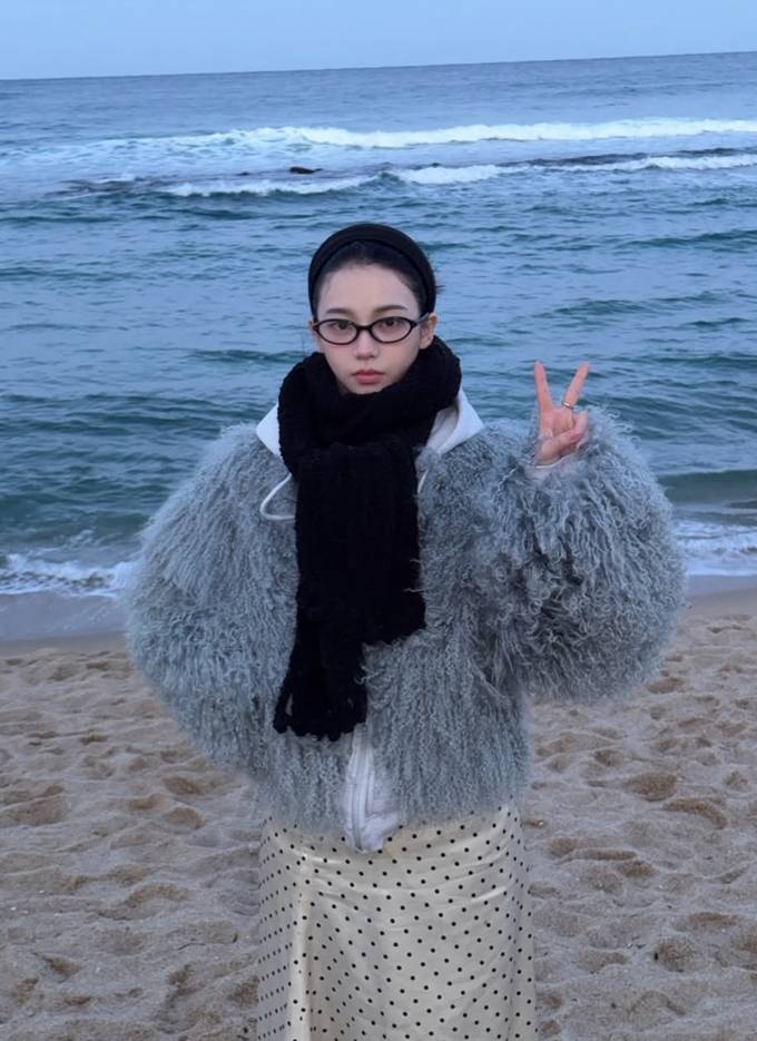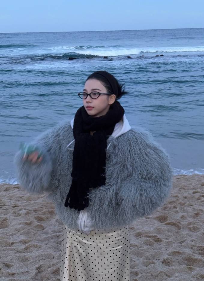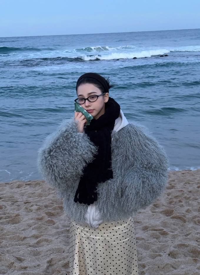 5. 5.에스파 카리나, 훌쩍 떠난 강릉 앞바다에서 로맨틱 러블리! 복슬복슬 퍼 재킷 여행룩