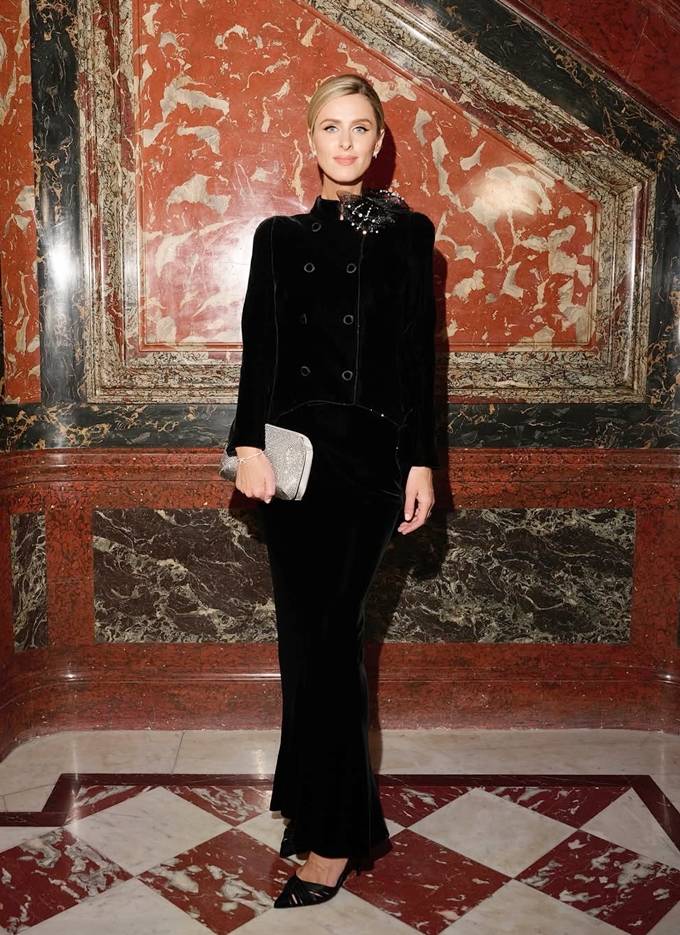 공개한 사진에서 니키 힐튼은 단정하게 묶은 헤어 스타일에 몸에 밀착된 벨벳 소재의 하이넥 재킷과 롱 스커트의 투피스 드레스룩으로 우아하면서도 럭셔리한 미모를 발산했다.
