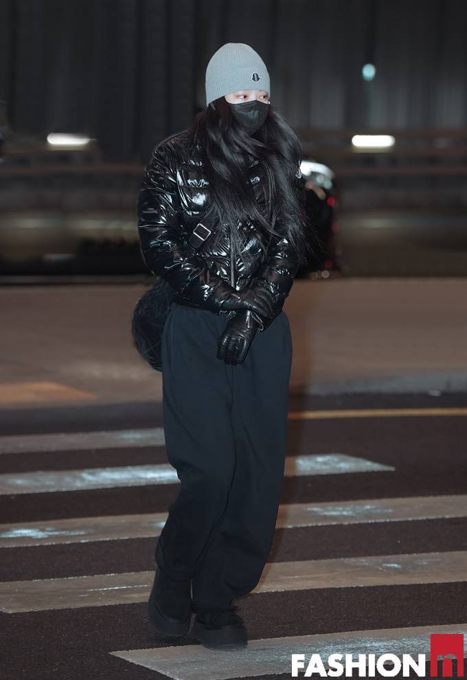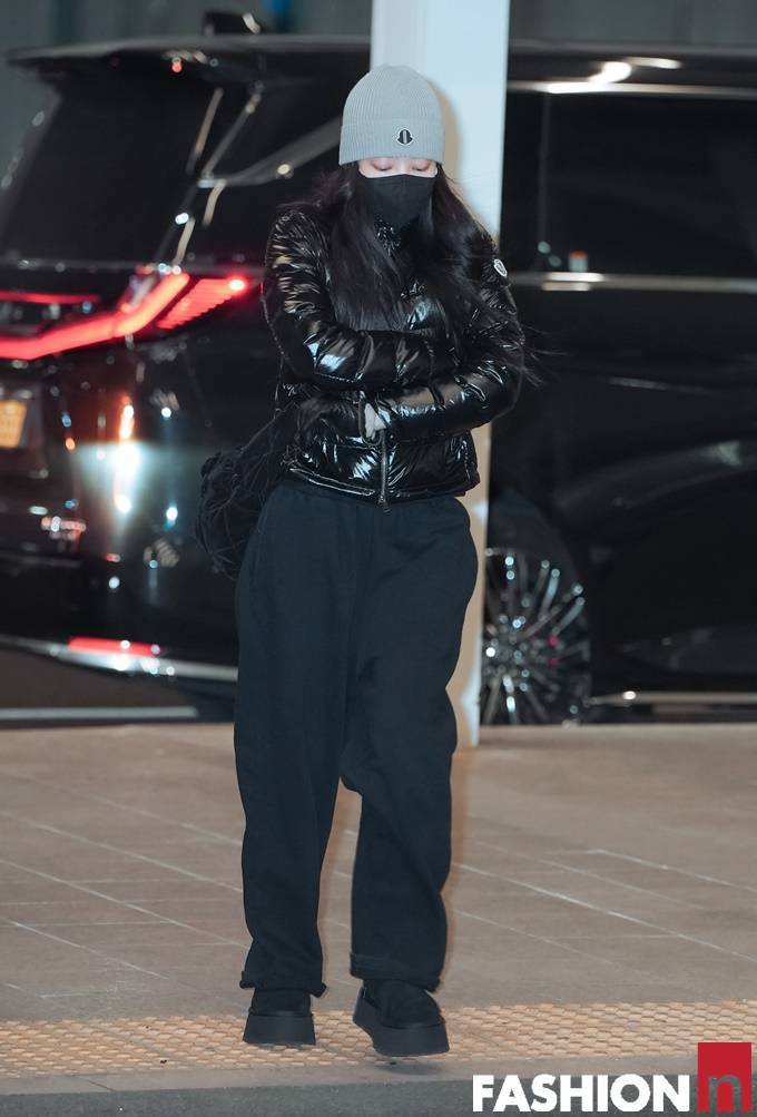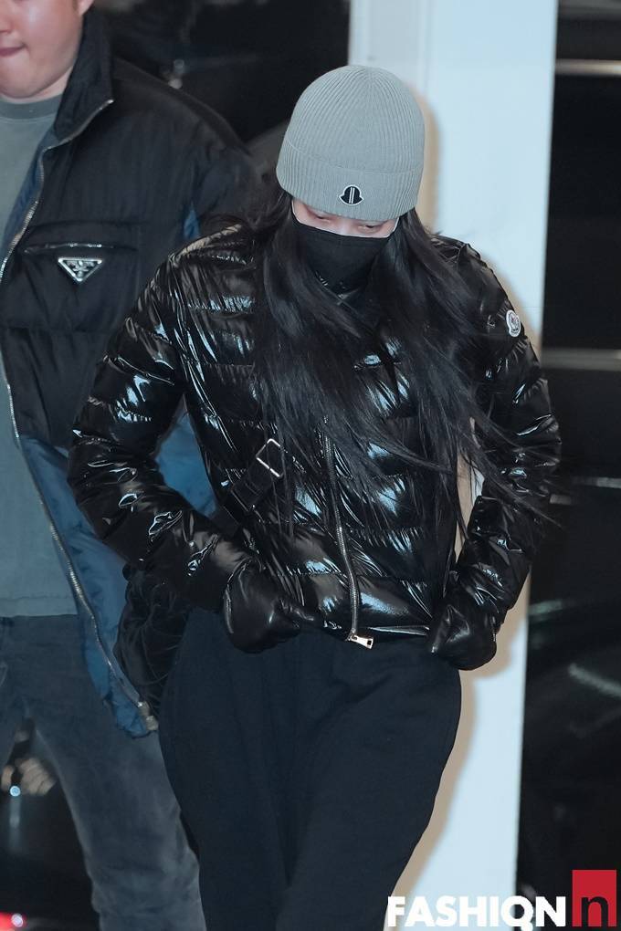 그룹 블랙핑크(BLACKPINK) 멤버 제니(JENNIE)가 광택감 있는 퀼딩 패딩룩으로 힙한 공항패션을 선보였다.