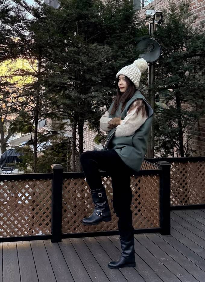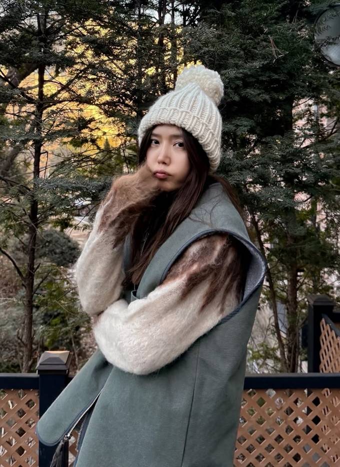 공개한 사진에서 채정안은 따뜻하고 포근한 니트 스웨터에 그린 컬러의 집업 베스트 재킷을 입고 방울이 달린 니트 비니를 매치한 산책룩으로 멋스러운 레이어드 스타일을 선보였다.