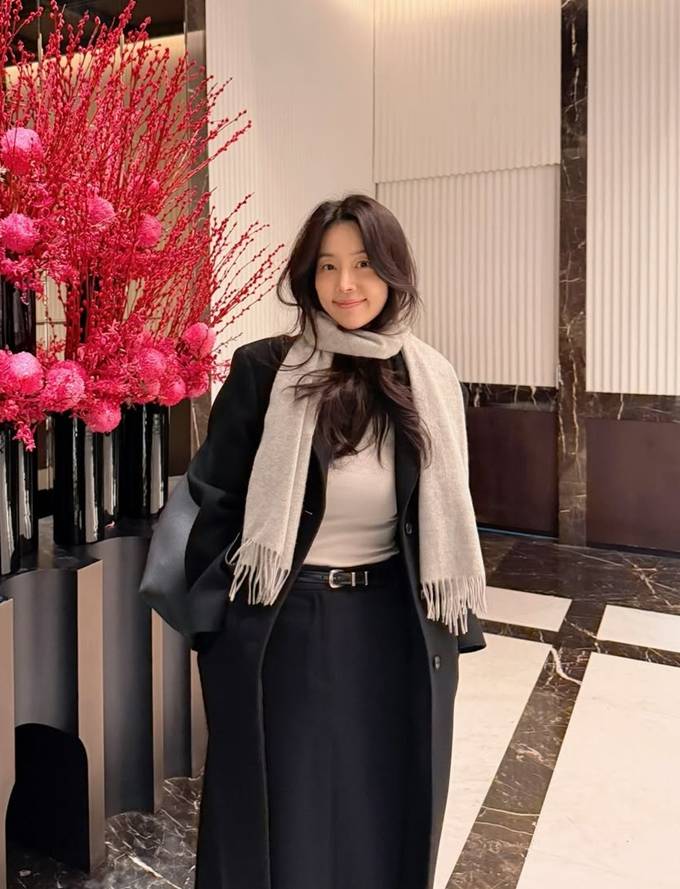 배우 한지혜가 롱 스커트에 롱 코트의 시크한 얼죽코룩으로 단아한 시크미를 발산했다.
