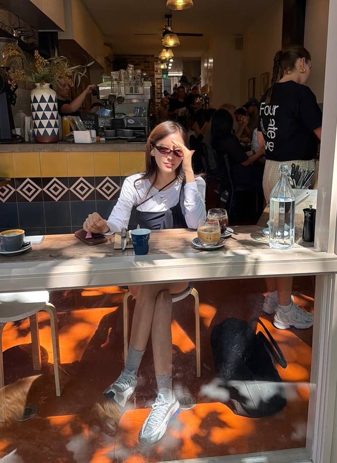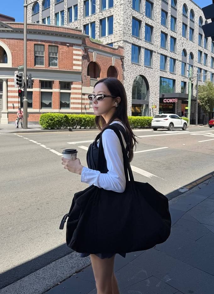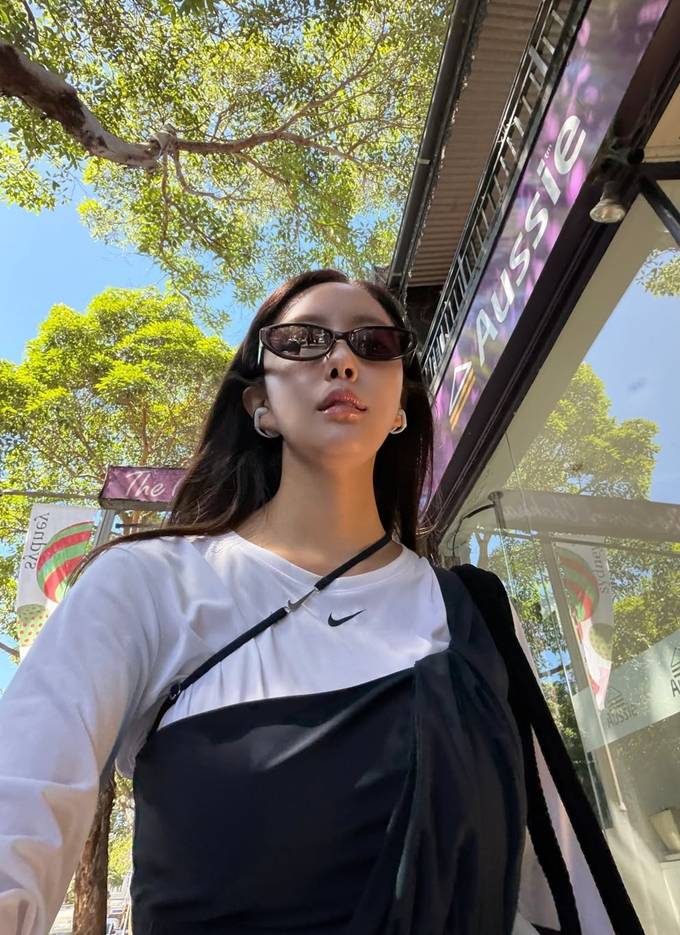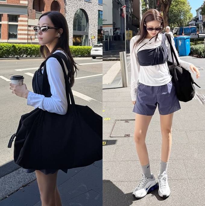 가수 효민이 호주 시드니에서 감각적인 슬리브리스 톱 레이어드 스트릿룩으로 잇걸 다운 존재감을 드러냈다.