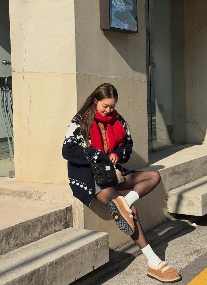 또 여기에 블랙 미니백과 니트 장갑 등을 매치해 남다른 패션 센스를 드러냈다.