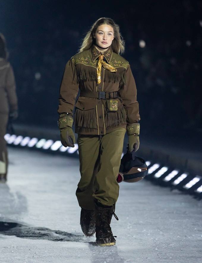 모델들은 지형에 맞춰 설계된 룩을 입고 눈 덮인 모굴 슬로프를 가로질렀고, 알파인숲을 형상화한 라이트 프로젝션은 자연과 기술이 공존하는 산악 라이프스타일의 비전을 상징적으로 드러냈다.