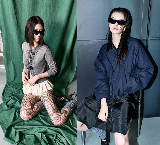 스커트와 원피스는 주로 광택감 있는 소재와 유연한 실루엣을 적용했고, 대비되는 느낌의 캐주얼 아우터와 함께 매치해 Z세대식 힙한 스타일링을 제안했다.