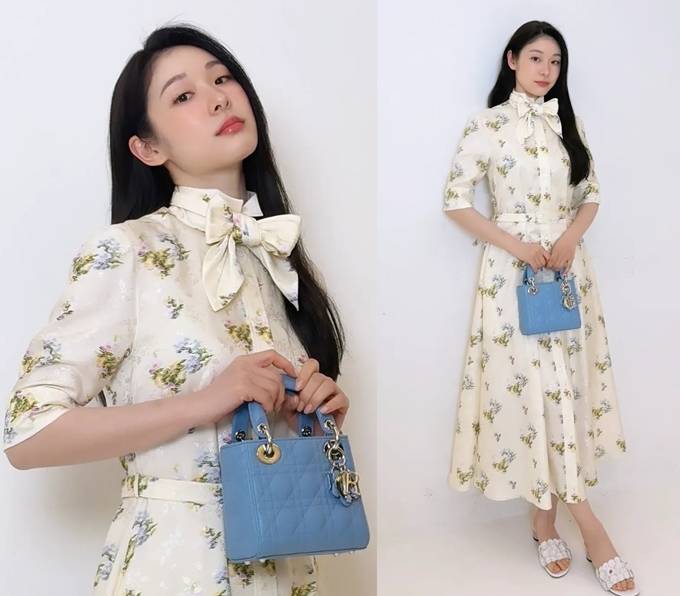 김연아, 먼저 맞은 봄날! 우아한 꽃무늬 플레어 실루엣 플로럴 리본 원피스룩