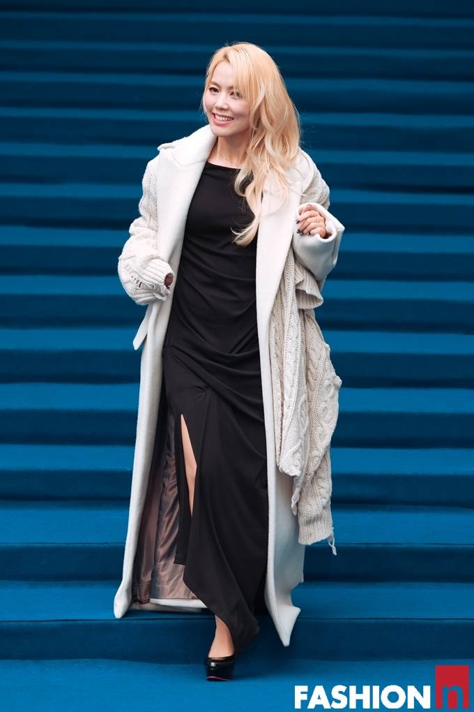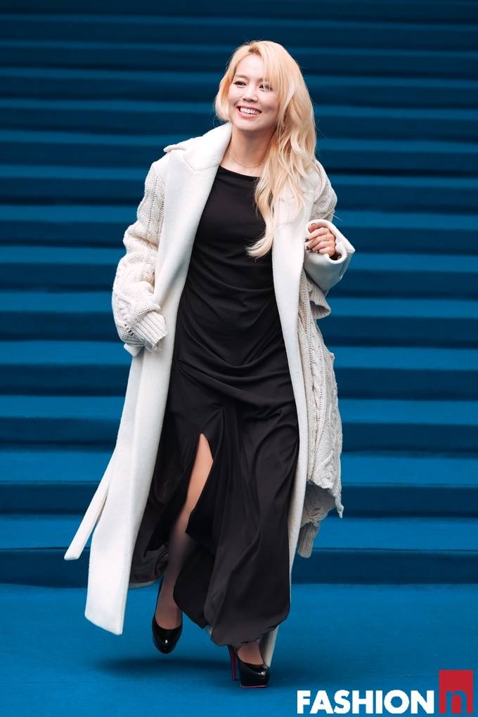 이날 소향은 아이보리 코트 위에 같은 컬러의 케이블 니트 카디건을 걸친 레이어드 스타일에 이너로 하이슬릿 블랙 롱 원피스를 착용한 패션쇼 나들이룩으로 스타일리시한 면모를 드러냈다.