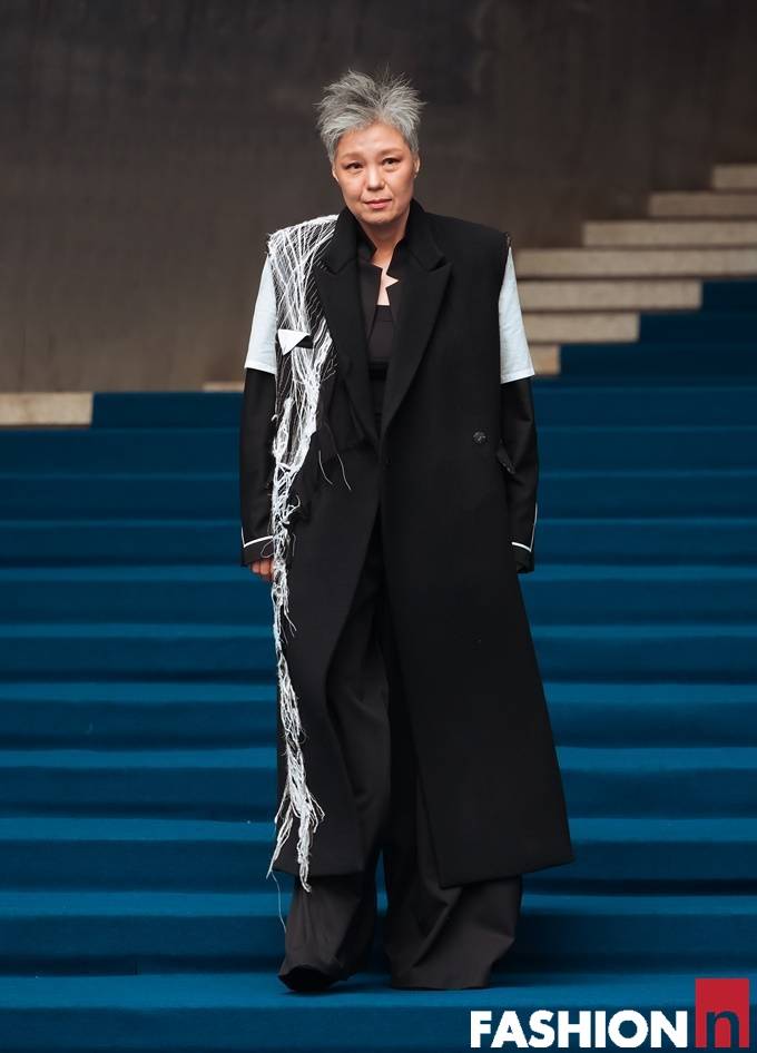 가수 이은미가 해체주의적 요소가 가미된 맥시 코트룩으로 동대문 패션위크를 흔들었다.