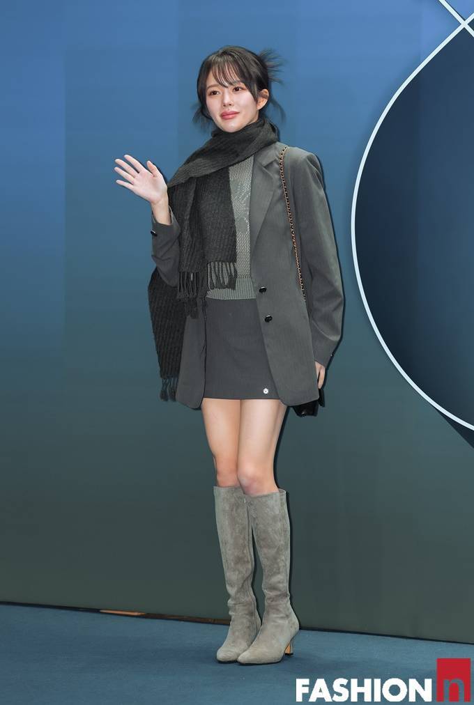 배우 정지소가 그린 톤온톤 스커트 수트로 상큼한 미모를 빛냈다.