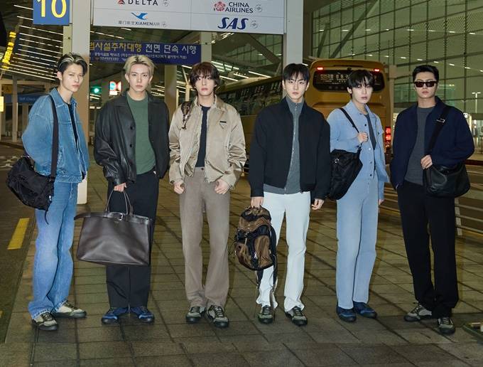 엔하이픈의 니키, 희승, 제이크, 정원, 선우, 제이 6명의 멤버는 이날 정제된 무드 속, 각자 개성이 돋보이는 세련된 공항패션으로 시선을 사로잡았다.