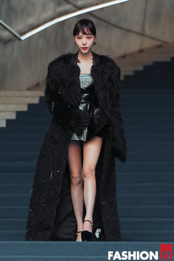이날 이열음은 늘씬한 각선미가 드러난 튜브톱 미니 원피스에 블랙 퍼 롱 코트를 매치한 아방가르드한 드레스룩으로 DDP를 흔들어 놓았다.