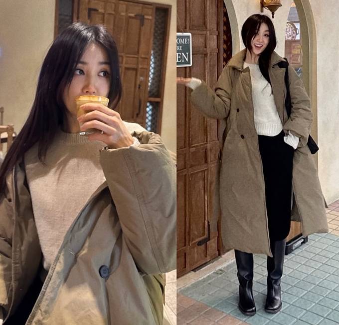 공개한 사진과 영상에서 박하선은 보온성과 코트의 깔끔한 실루엣을 살린 내추럴 무드의 베이지 톤 롱 패딩 코트에 크림 컬러의 니트 톱과 블랙 롱 스커트를 매치해 차분하면서도 여성스러운 분위기를 드러냈다.