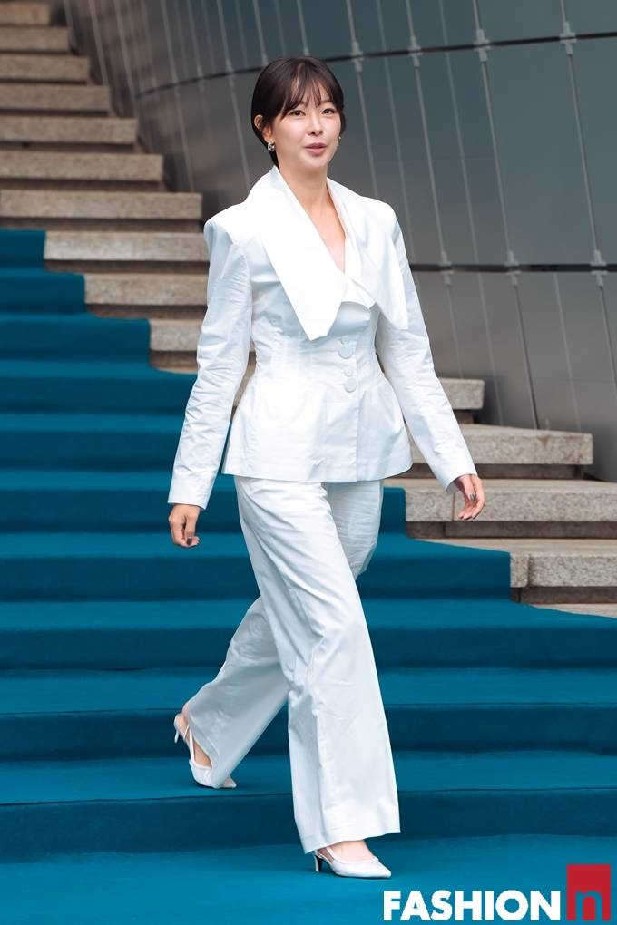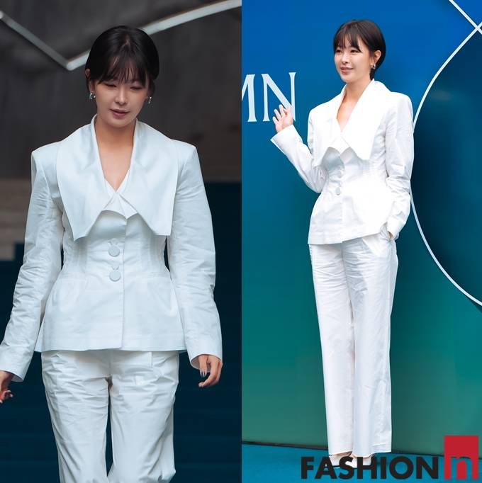 이날 고원희는 빅 카라가 눈에 띄는 화이트 재킷에 화이트 팬츠를 매치한 올 화이트 슈트룩으로 단아하면서도 세련된 스타일을 선보였다.