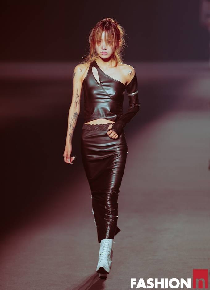 최준희는 6일 오전 서울 동대문 디자인플라자에서 열린 ‘서울패션위크 2026 F/W 홀리넘버세븐 (HOLY NUMBER 7) 패션쇼에 원숄더 가죽 투피스룩으로 전문 모델 뺨치는 프로페셔널 워팅으로 눈길을 끌었다.