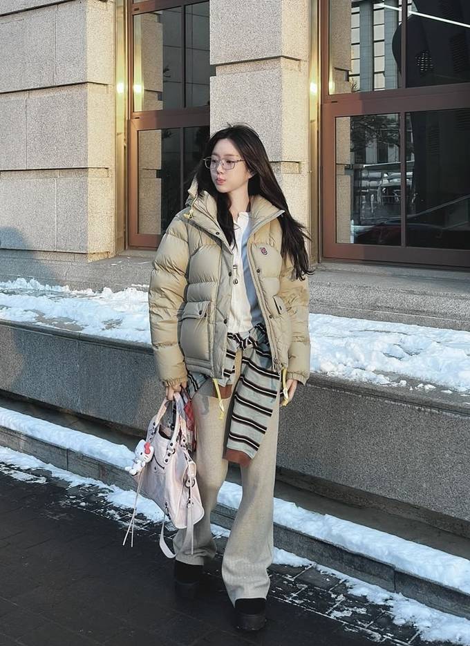 공개한 사진에서 이유비는 볼륨감이 있는 베이지 톤의 숏패딩으로 포근한 겨울 감성을 살렸다.