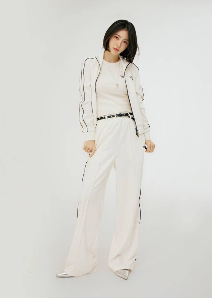 공개된 화보에서 신예은은 블랙 옆줄 라인이 멋스러운 트랙 집업 재킷과 팬츠의 애슬레저룩으로 단정하면서도 경쾌한 무드를 드러냈다.