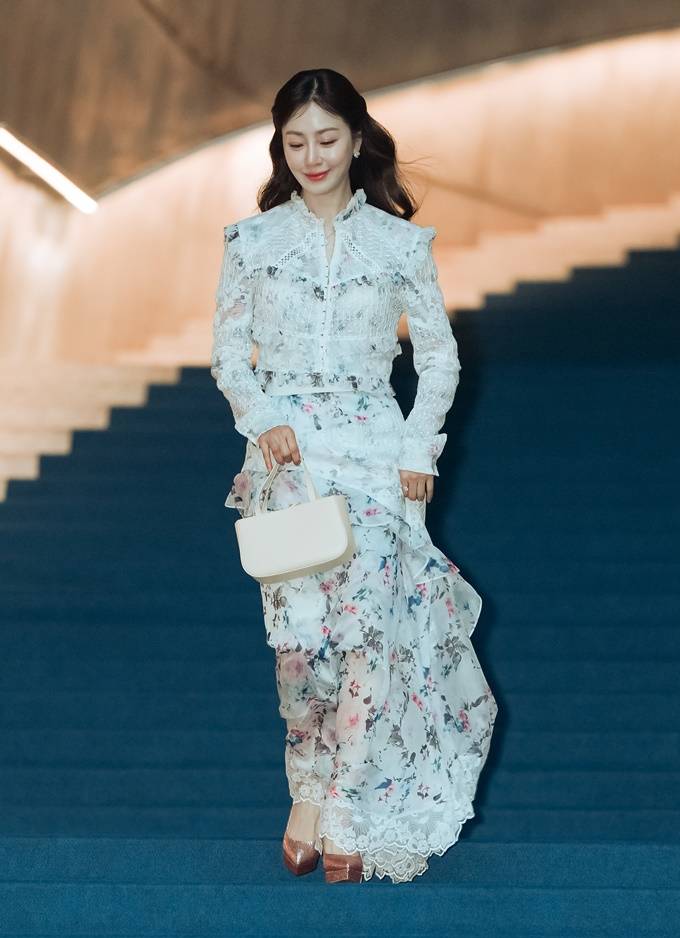 배우 오나라가 하늘하늘한 꽃무늬 러플 드레스룩으로 서울 패션위크를 밝혔다.