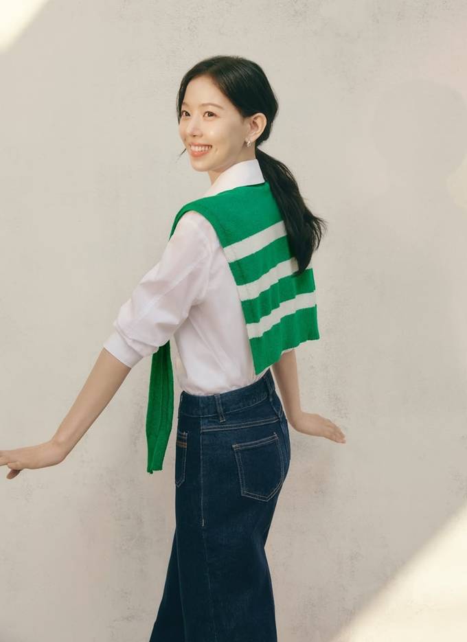 공개한 화보에서 강한나는 블랙 팬츠와 화이트 톱에 트위드 재킷을 걸친 스타일과 데님 셔츠 원피스, 클래식한 화이트 투피스, 그리고 화이트 셔츠에 그린 컬러의 니트 스웨터를 두른 봄 페미닌룩으로 청순하면서도 훈훈한 여성미를 드러냈다.