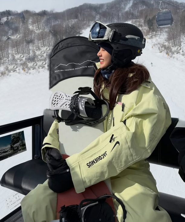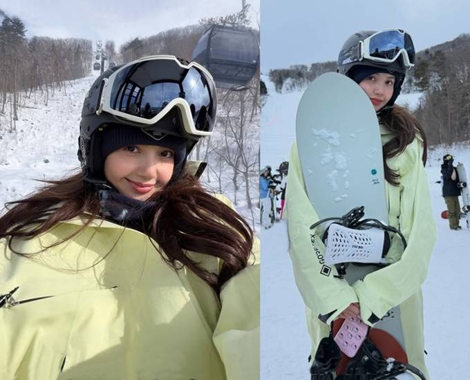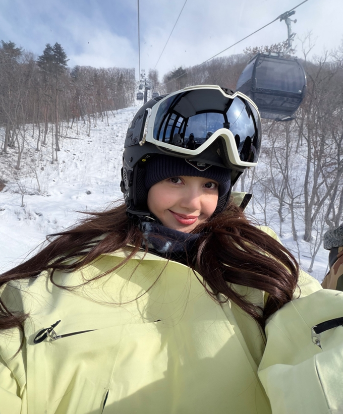 사진 속 리사는 연노란색 스키복을 입고 스노보드 장비를 즐기고 눈 덮인 산을 배경으로 곤돌라를 타고 이동하며 찍은 셀카도 공개했다.