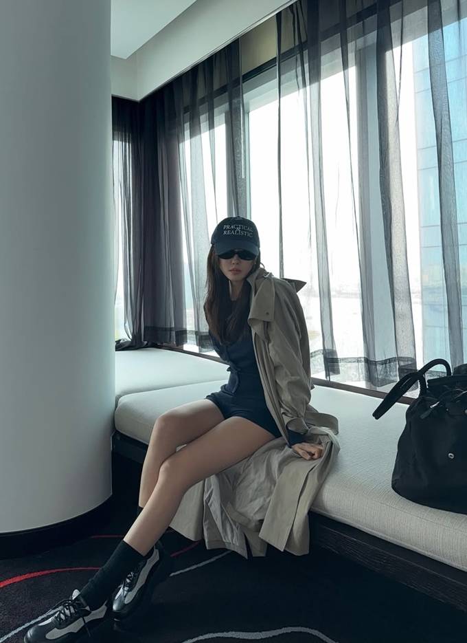 공개한 사진에서 효민은 탄탄한 몸매가 드러난 다크 네이비 컬러의 쇼츠와 크롭 재킷의 애슬레저 셋업에 트렌치코트를 걸친 출국룩으로 스타일리시하면서도 자유분방한 모습을 드러냈다.