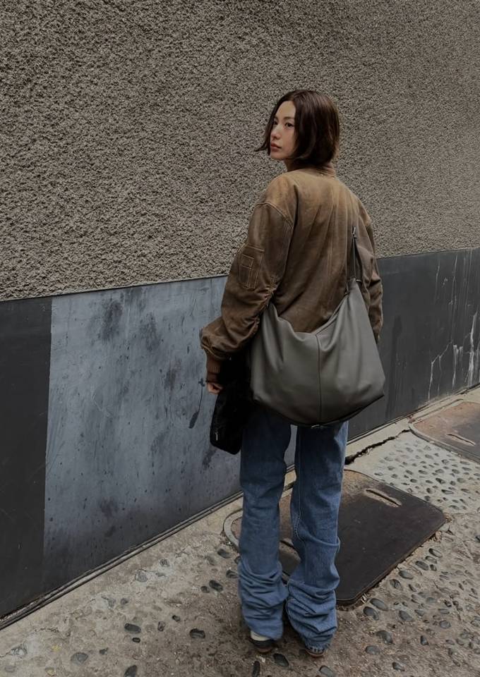 배우 나나가 샤프카 햇에 밀착 터틀넥을 입고 스웨드 재킷을 챙긴 스트릿룩으로 간절기 힙의 정석을 선보였다.