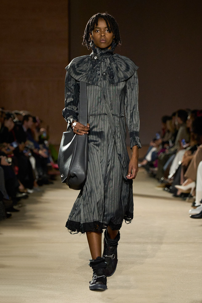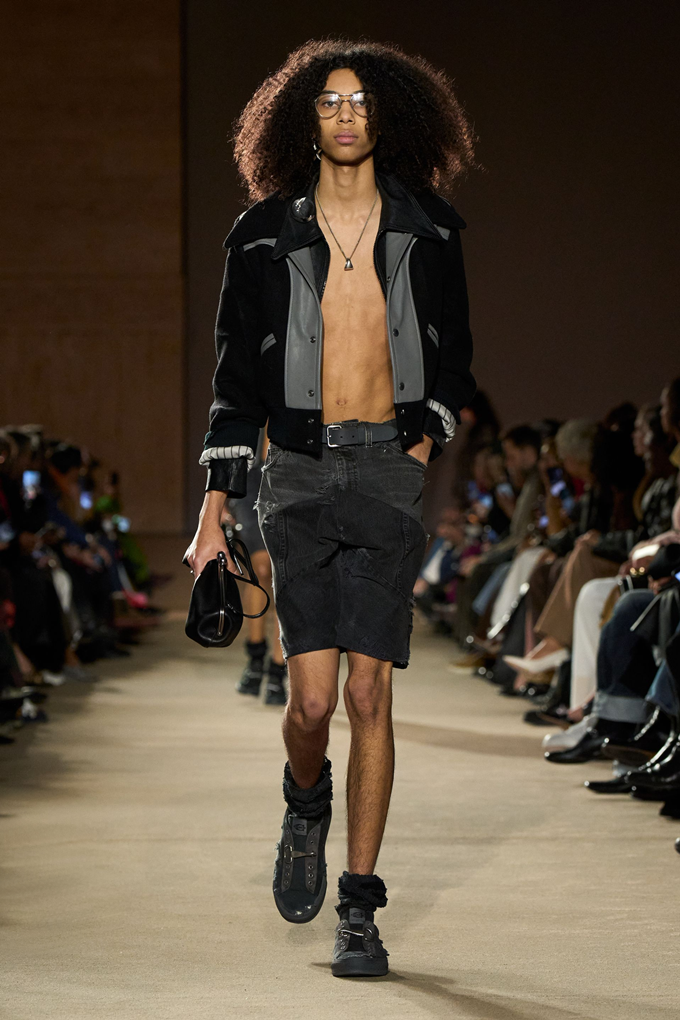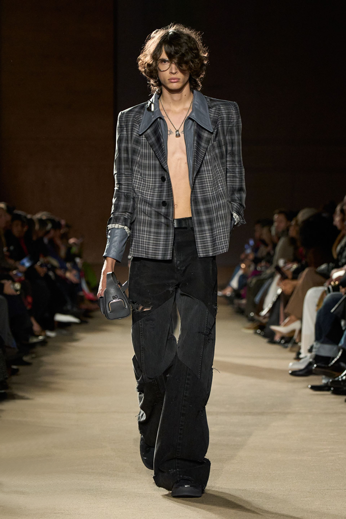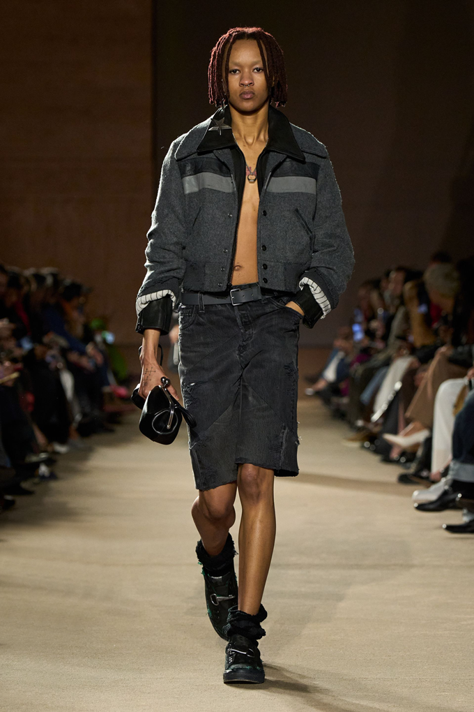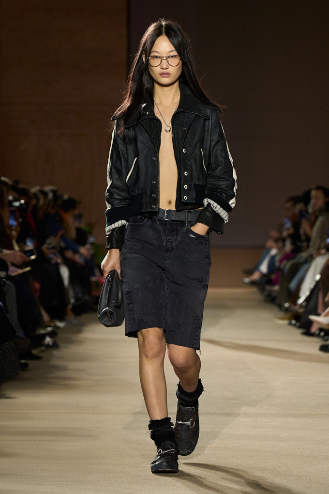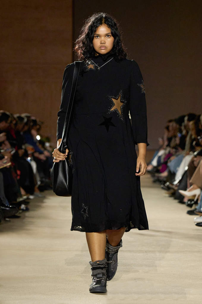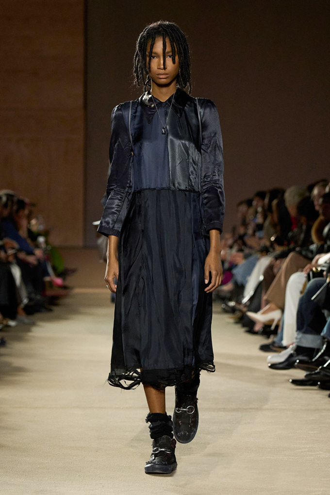 체크무늬 블레이저 안에 가죽 재킷을 레이어드한 스타일를 비롯해 미스 걸치(Miss Gulch)를 연상시키는 찢어진 레이스 밑단의 프레리 드레스, 무릎 길이 버뮤다 데님 반바지 등이 눈길을 끌었다.