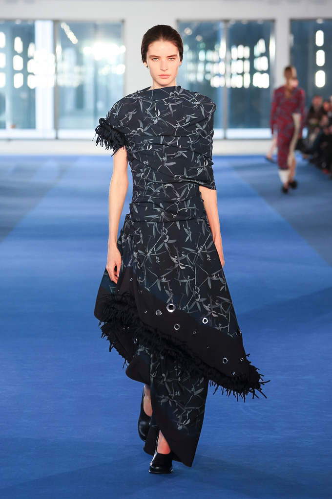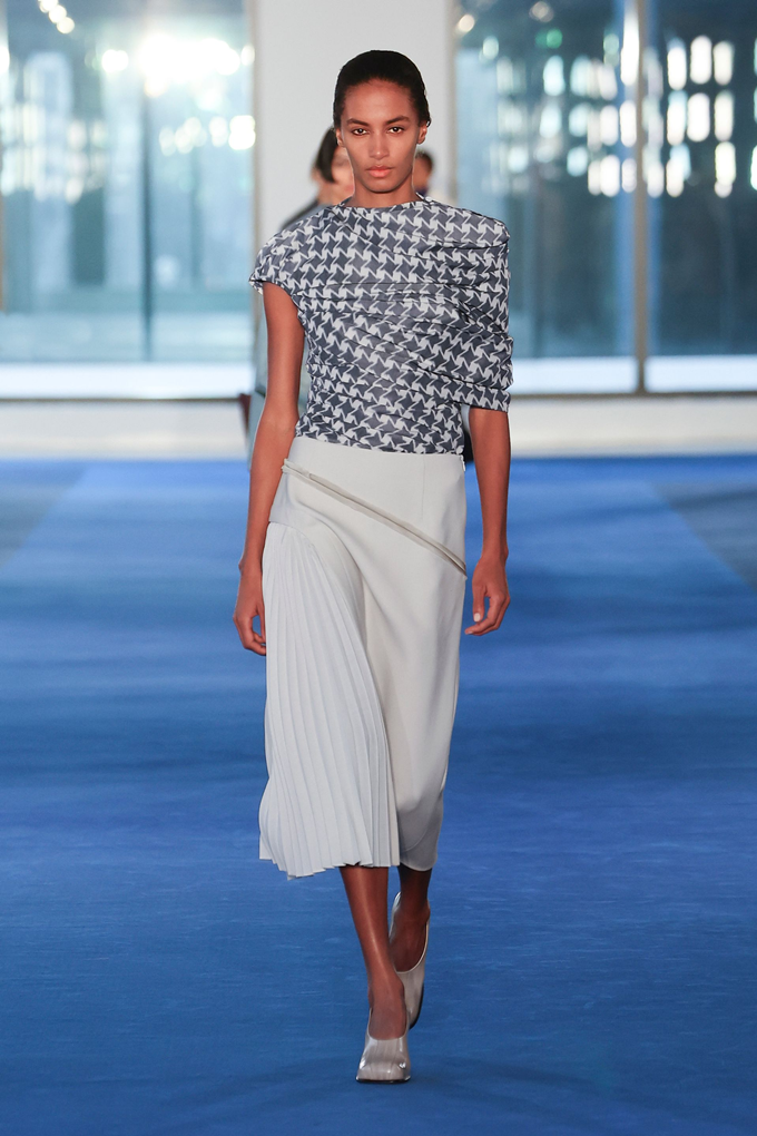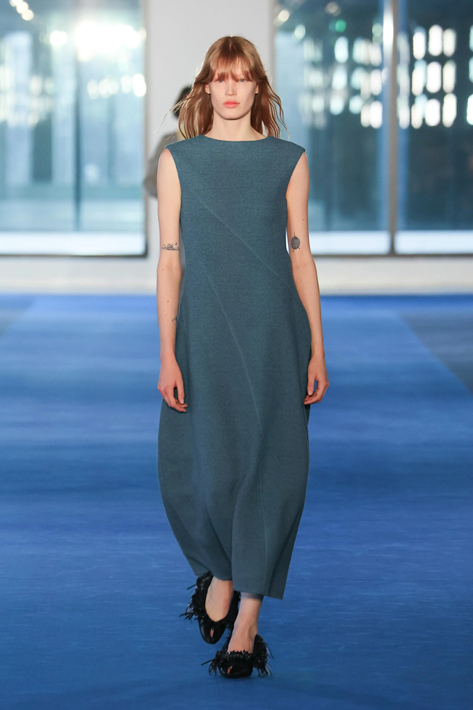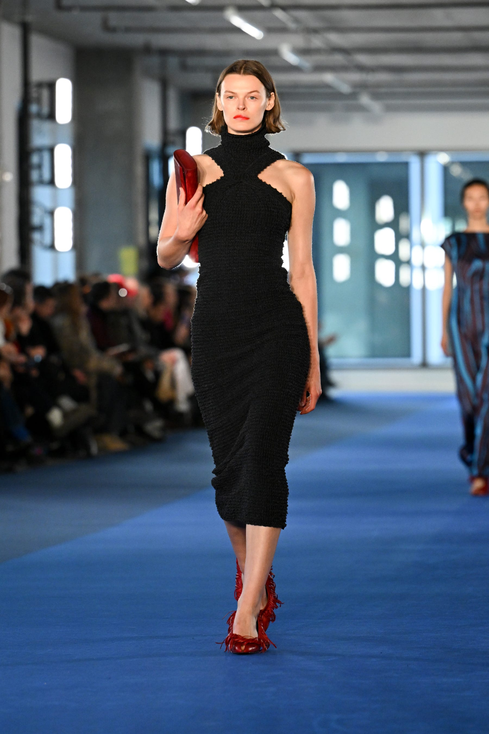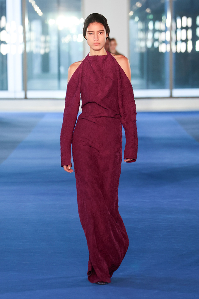 드레스는 부드럽게 구겨지고, 드레이핑 디테일로 자연스러우면서 실용적인 감각을 강조했으며 무심한 듯 역동적인 실루엣과 유연성이 조화를 이루었다.