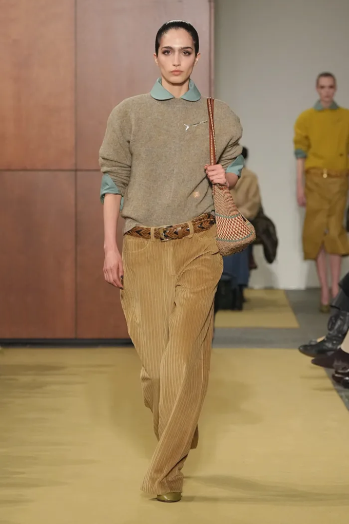 아버지의 옷에서 영감을 받은 낡은 코듀로이 팬츠는다양한 기법과 비율의 조화가 돋보였으며 셰틀랜드산 울 스웨터는 브러싱과 워싱 처리되어 가볍고 부드러운 촉감을 자랑했다.