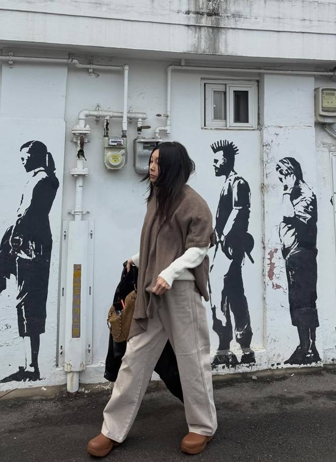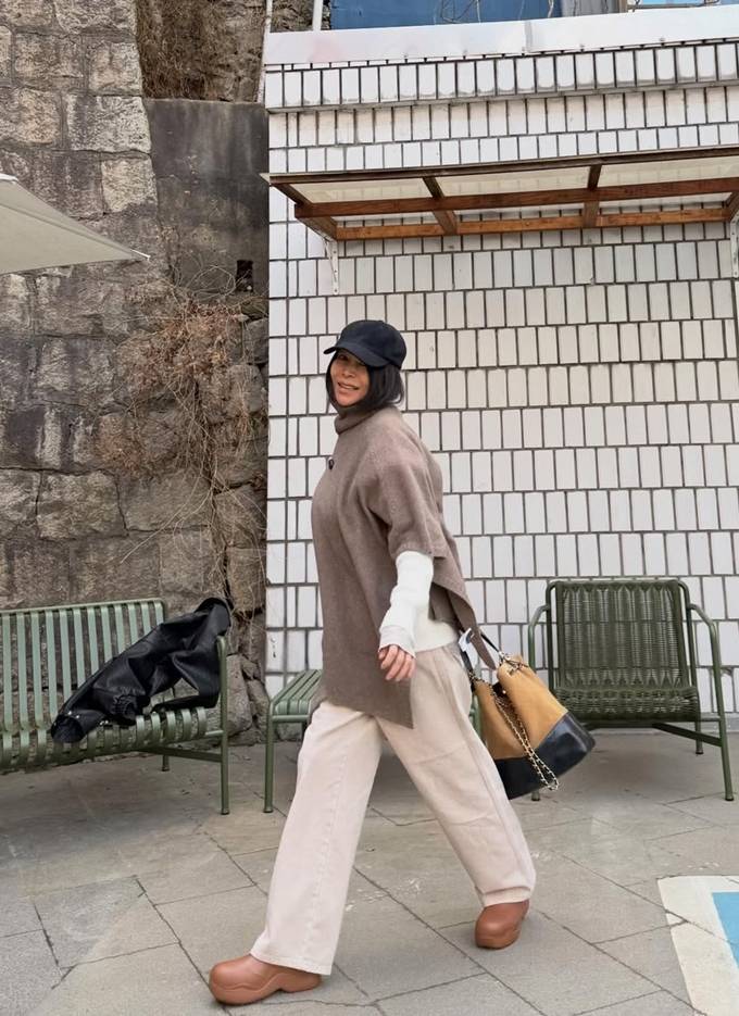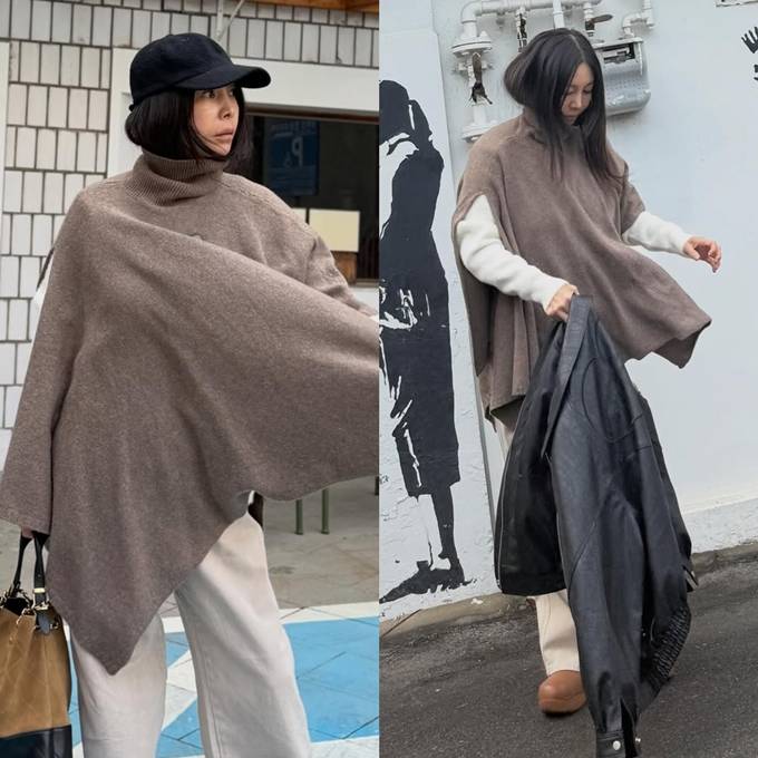 황신혜, 오늘은 케이프 하나로 충분! 레더 재킷 벗어 던진 가벼운 봄 데일리룩