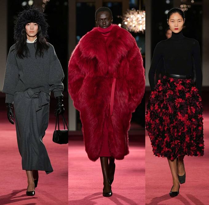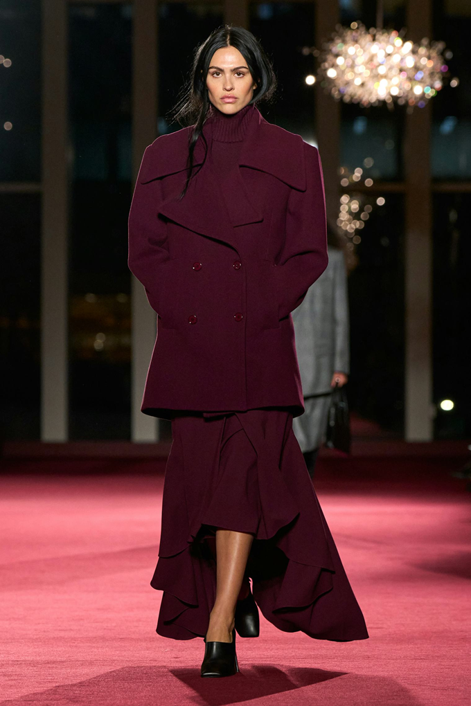 컬러 팔레트는 이번 시즌 ‘폰(fawn)’이라는 이름으로 선보인 시그니처 카멜 컬러와 어반 뉴트럴을 중심으로, 루비·라즈베리·와인 등 강렬한 색조가 포인트로 더해졌다.