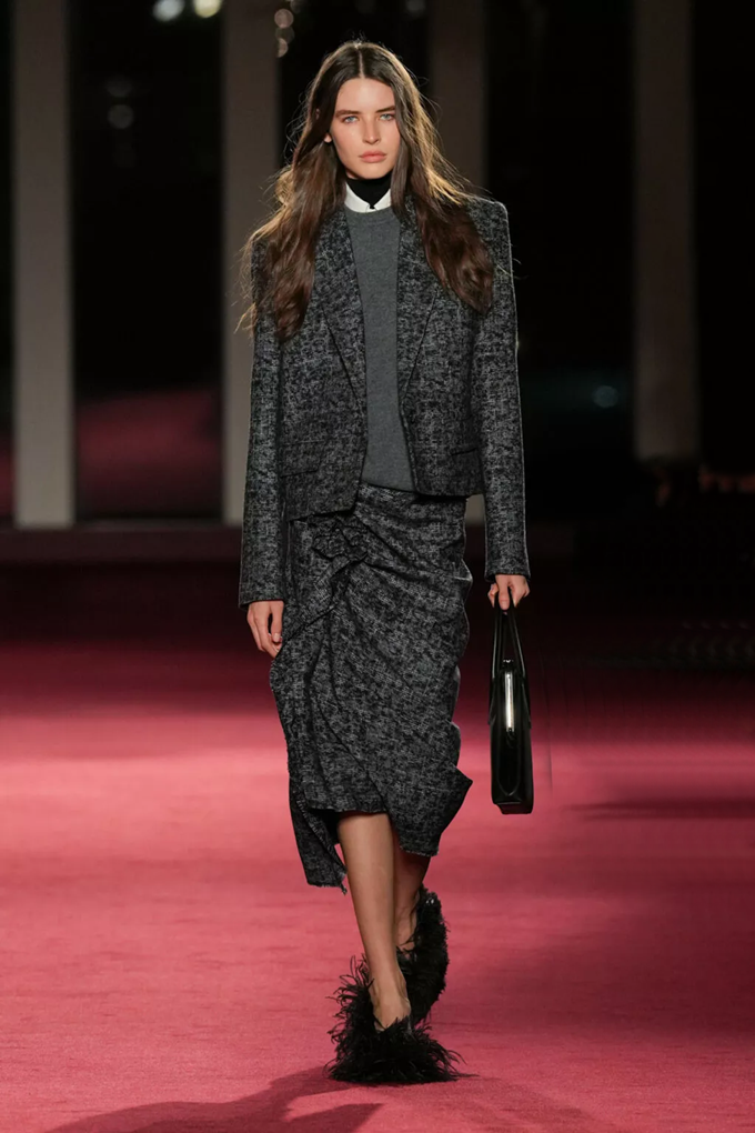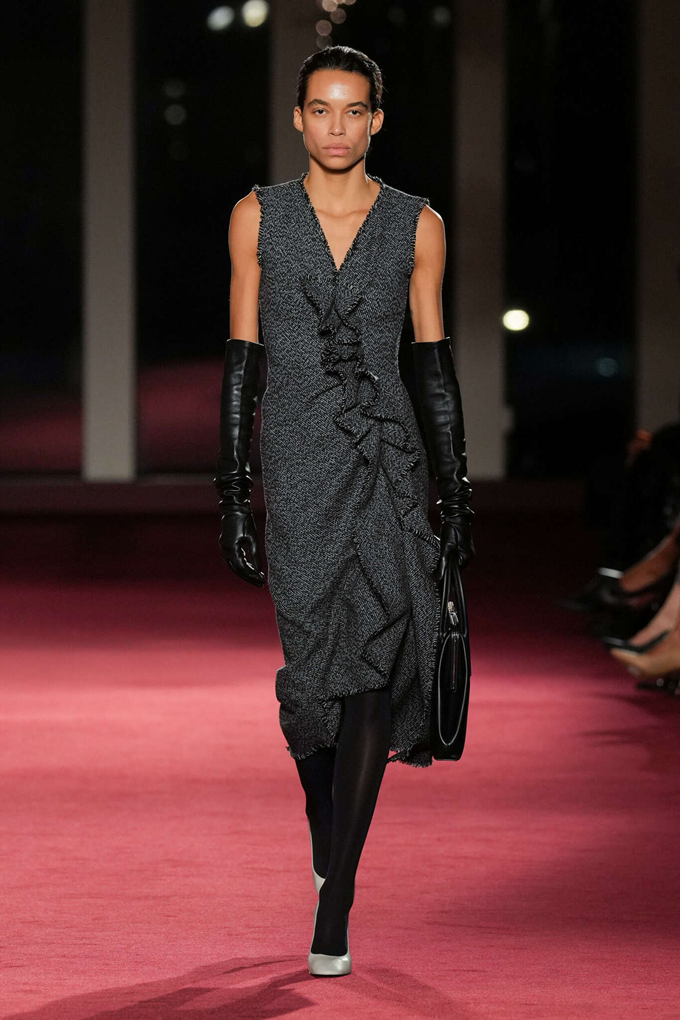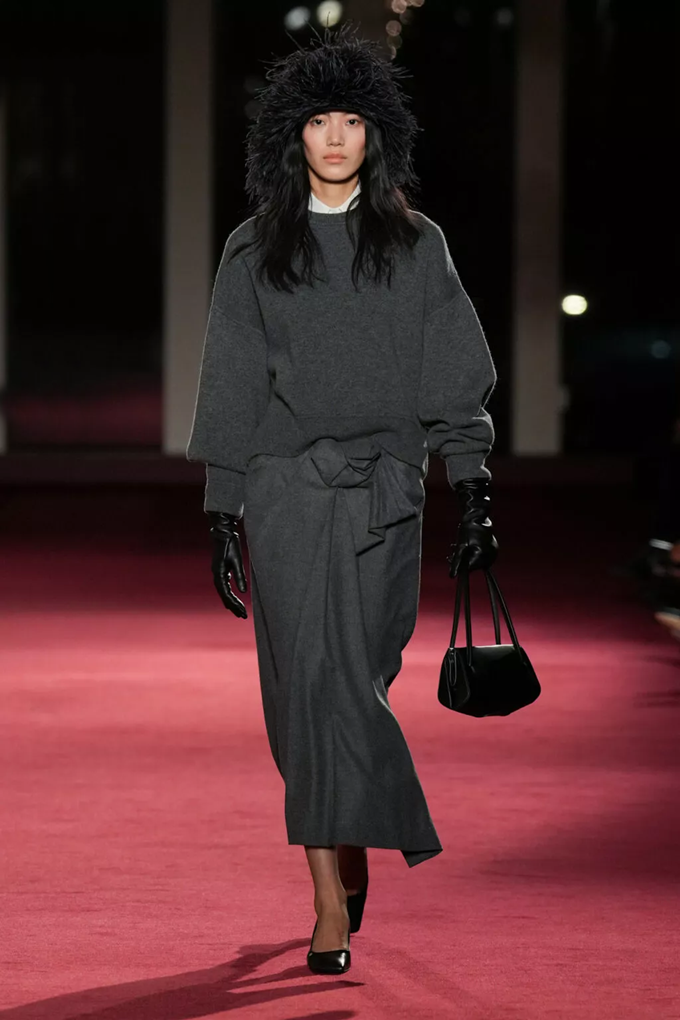 테일러링은 바이어스 컷과 섬세한 드레이핑, 우아한 레이어링, 그리고 트위드와 플란넬 등 클래식한 소재에 현대적 감각을 더해 부드러운 실루엣을 완성했다.