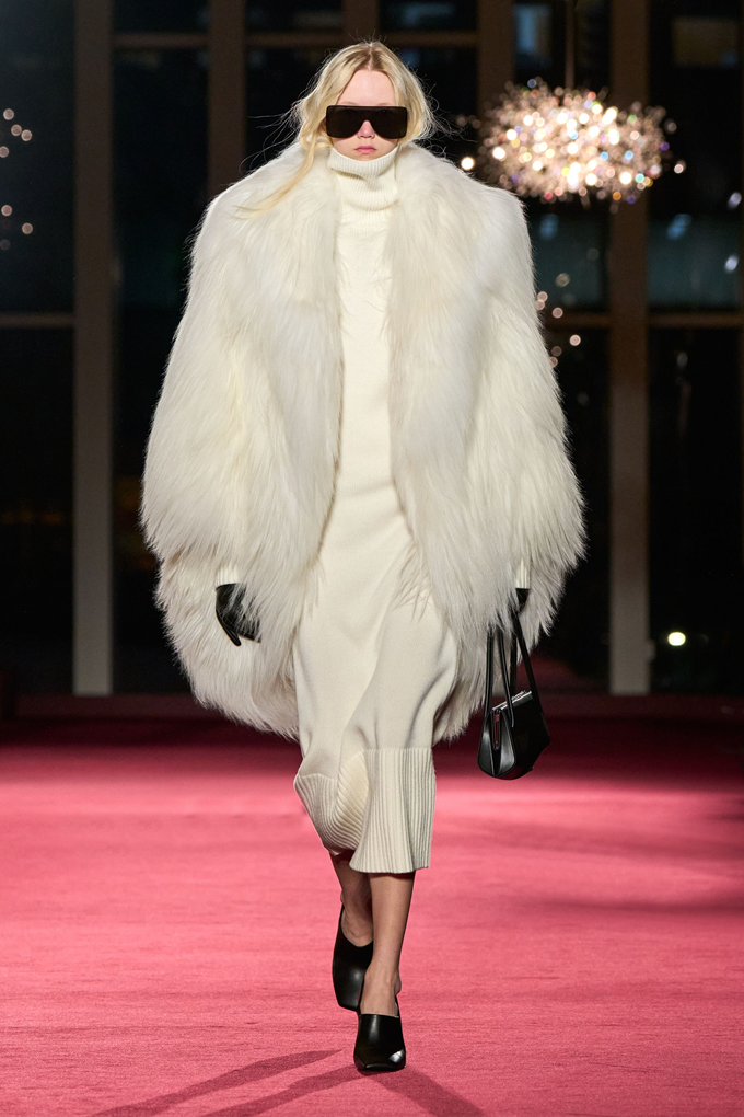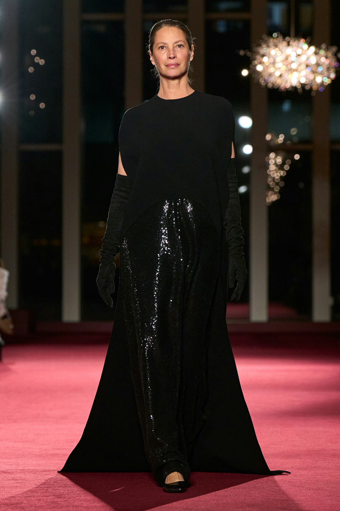 마이클 코어스 컬렉션의 45주년을 기념하는 이번 쇼는 고급스러운 질감, 조각 같은 테일러링, 강렬한 레드와 블랙 조합, 그리고 은은한 뉴욕의 화려함을 담은 모던 글램룩으로션으로 뉴욕의 상징적인 음과 양을 담아냈다.